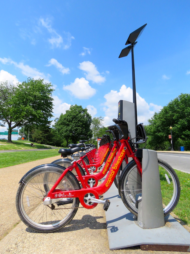 A la altura de muchas ciudades del mundo, Washington DC cuenta con varios servicios de bicicletas y patinetas de uso compartido. Algunas se pueden tomar directamente en los puntos de acopio pagando con la tarjeta de crédito y otras requieren el uso de una aplicación móvil. En nuestro caso usamos Capital Bike Share que permite realizar trayectos de media hora por US$2. Aunque no es necesario, es útil descargar la aplicación móvil para identificar los lugares donde se pueden tomar y dejar las bicicletas y evitar pasarse de los 30 minutos ya que el tiempo adicional es mucho más costoso. Quienes vayan a usar mucho las bicicletas pueden tomar un pase diario de US$8 el cual les da trayectos ilimitados, siempre y cuando ninguno supere la media hora.