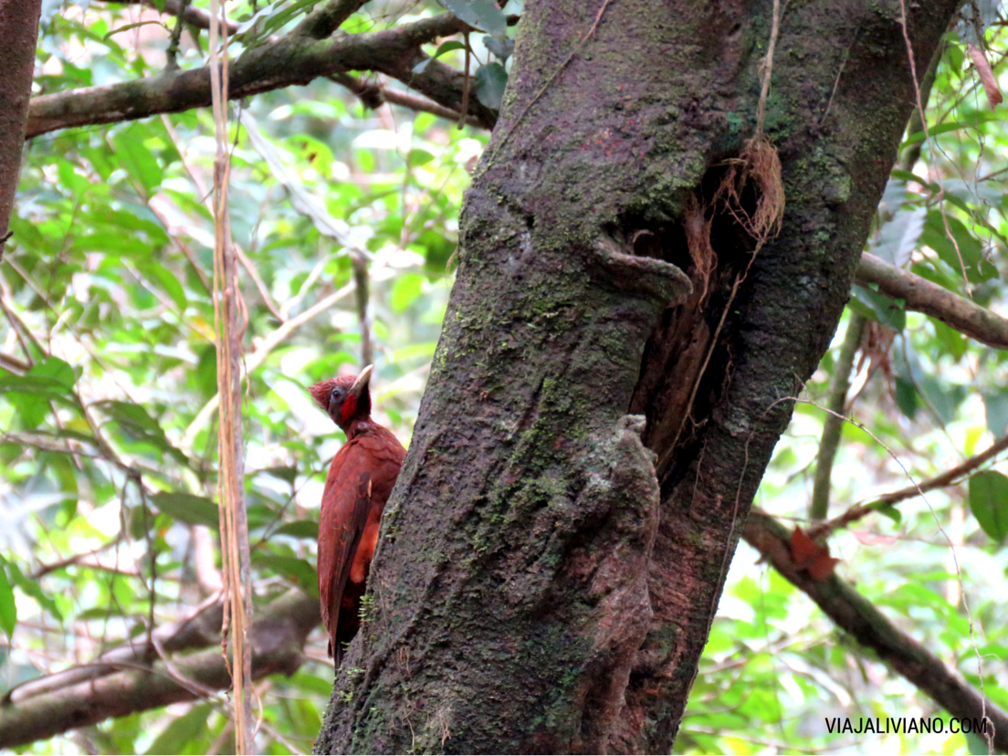 Estos delfines que se especula emigraron desde el Océano Pacífico y evolucionaron para adaptarse a este ecosistema, son ligeramente diferentes a los delfines de mar y más difíciles de ver por el color café oscuro del río. Pudimos observarlos a lo lejos durante pocos segundos mientras asomaban la cabeza o la aleta en diferentes puntos del río y siempre provocaban una gran excitación en el bote.