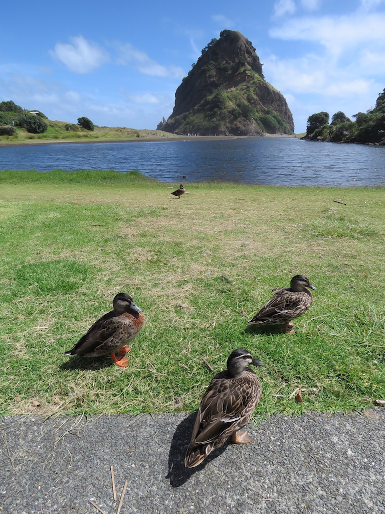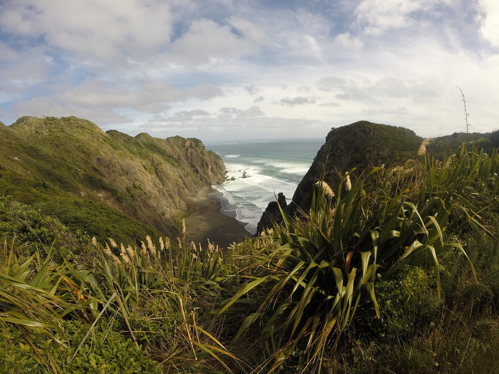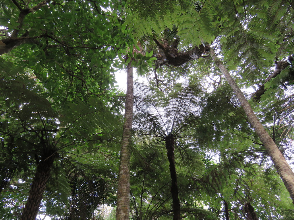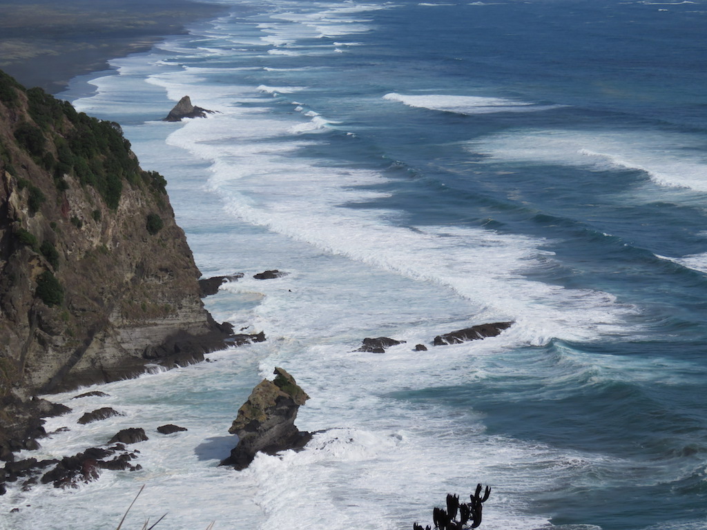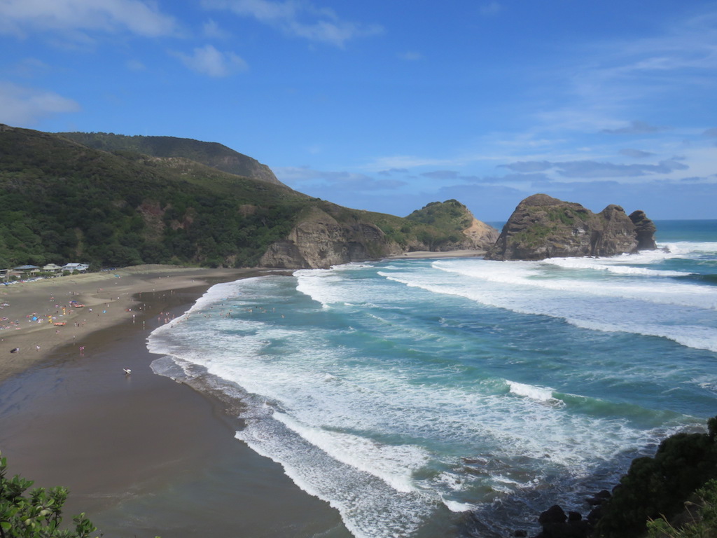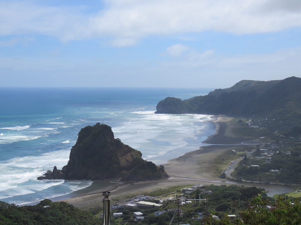 El segundo día recorrimos el Parque Regional Waitakere Ranges, el cual está en la costa oeste de Auckland (al otro lado de Rangitoto que está en la costa este). Allí visitamos Lion Rock, cerca de la población de Piha, una pequeña roca que puede subirse fácilmente desde la playa. Después hicimos un pequeño recorrido del “Hillary Trail” que nos permitió ver impresionantes riscos y la vegetación nativa. Finalizamos el recorrido en el centro de visitantes, que aunque estaba cerrado, tenía una hermosa pasarela exterior para apreciar el parque.