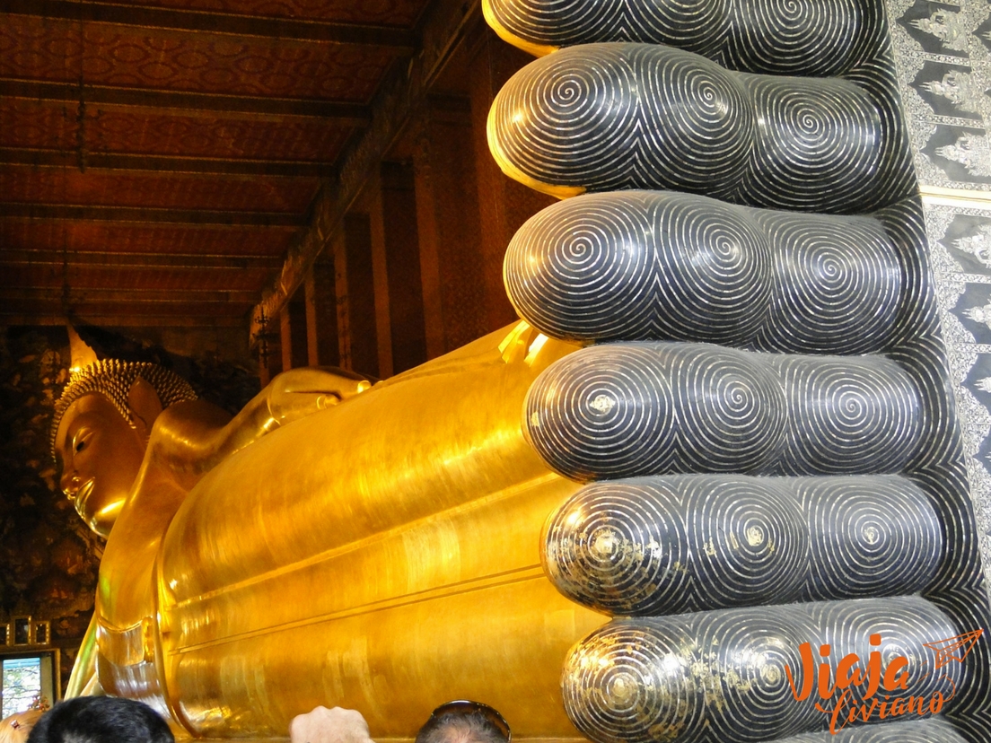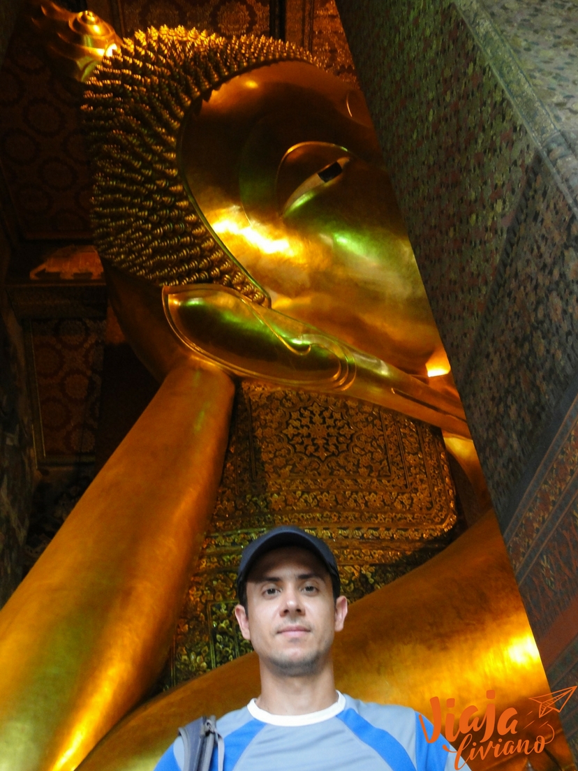 Al llegar al Gran Palacio ya eran las 2:30 pm, por lo que decidimos posponer la visita ya que cierran a las 3:30 pm y caminar hasta Wat Pho, donde está el Buda reclinado y más de mil budas más. Allí pudimos apreciar desde pequeñas representaciones de Buda, hasta el gran Buda reclinado que mide 46m de largo. En el lugar además había monjes, niños en una especie de ceremonia de graduación y un grupo de mujeres orando y cantando, todas vestidas de blanco.