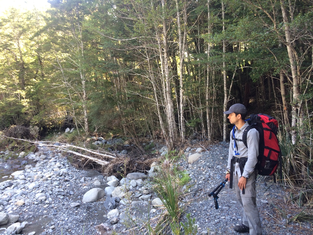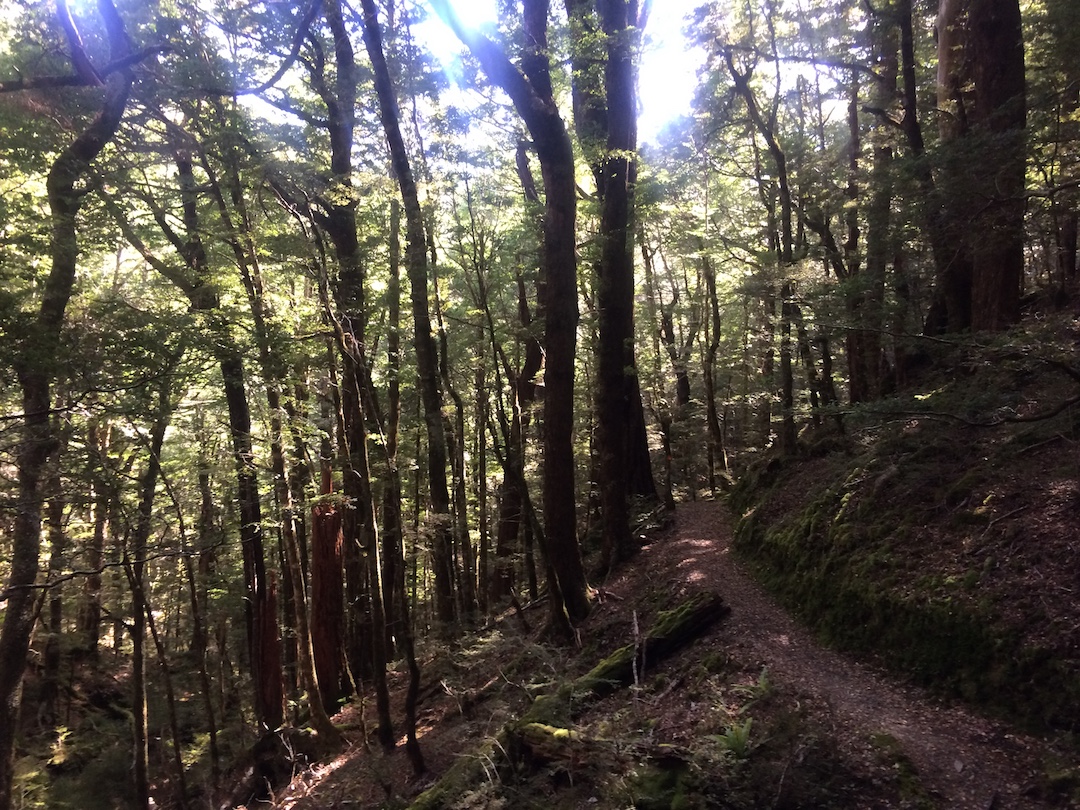 Atrás escucho a David hablando con Sierra, con quien ya llevamos un par de kilómetros caminando. Hablan de las montañas de Colombia, de por qué está sola en Nueva Zelanda haciendo esta caminata, de su vida en el sector financiero, de Indonesia. Los escucho como si su voz viniera de un televisor en el cuarto de al lado cuando uno empieza a dormirse: lejanos, abstractos, ajenos. Hablan mientras caminan, como si el camino no necesitara su silencio.