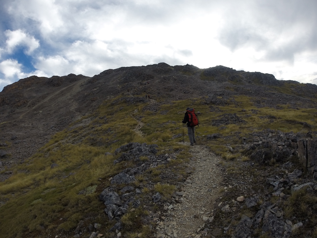 Hicimos la caminata “Angelus Hut” saliendo de la población de Saint Arnaud donde pasamos la noche en el camping del Departamento de Conservación. La primera parte del ascenso es bastante empinada por un bosque, luego se toma el filo de la montaña llamado “Robert Ridge” en total 12.2 km