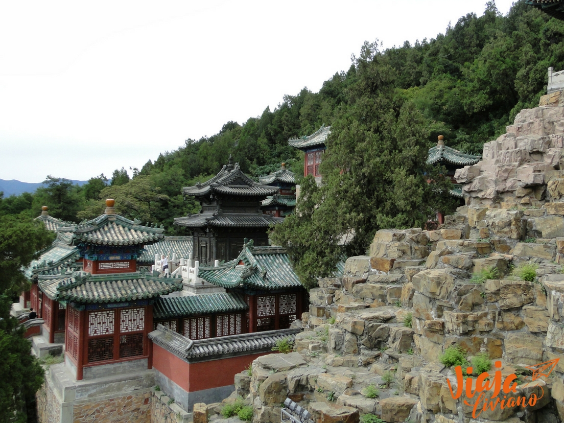 Nuestro paso por Beijing concluyó con la visita al Palacio de Verano. Este lugar nos gustó bastante ya que a diferencia de los otros está erigido alrededor de un gran lago artificial y en medio de unos bellos jardines y montañas. Este Palacio era el lugar donde algunos emperadores pasaban el verano, y en especial la famosa y célebre emperatriz viuda quién no sólo lo usó en algunos momentos como residencia por largos meses sino que, mientras el imperio sufría múltiples guerras e invasiones, ella dedicó millonarios recursos a reformarlo y agrandarlo.