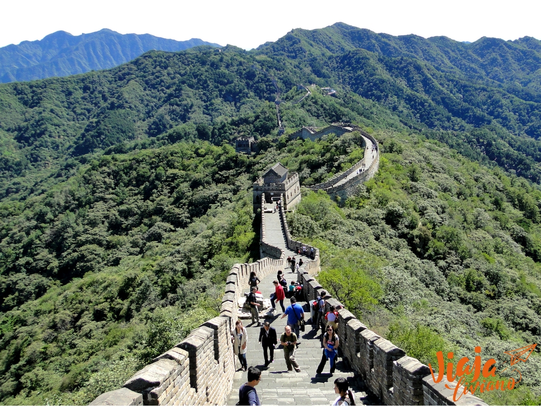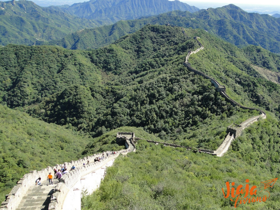 En la mañana siguiente cogimos un bus a una ciudad cercana y de allí un taxi a la entrada de uno de los tramos de la muralla China, un destino obligatorio si se viene por estas tierras. Habíamos decidido visitar este tramo de la muralla ubicado a dos horas de Beijing, pues nos dijeron que estaba muy bien conservada y que por estar un poco más alejada del tramo de la capital era mucho menos congestionada. Una vez allí, pudimos constatar la belleza de esta construcción ubicada sobre el filo de una escarpada y rocosa cadena montañosa. Para ascender a ella se podía coger un telesférico o llegar a través de un camino de escaleras. Alex y yo, decididos a no interrumpir nuestro entrenamiento de los días anteriores alrededor del edificio de arte, emprendimos el camino de escaleras a paso rápido e inclusive trotando en algunos tramos. Sólo tardamos 13 minutos en completarlo, pero cuando creíamos que todo había terminado, pudimos por primera vez apreciar los cientos de escalones que nos quedaban para recorrer la muralla durante el resto del día. Felices, en una de las torres, nos dimos un abrazo en celebración por haber llegado a un lugar que muchos años atrás, desde nuestro noviazgo, nos habíamos prometido conocer.
