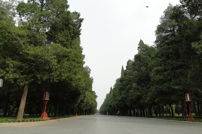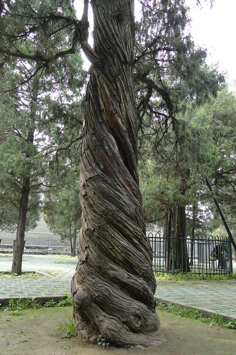 El primero de nuestros días en la capital lo pasamos en el Templo del Cielo, un lugar famoso que inclusive tiene un edificación que es usada como uno de los símbolos de este país en el exterior. Este lugar era usado por los emperadores para adorar al cielo con el fin de que los dioses los favorecieran con temporadas de buenas cosechas. El Templo consta de múltiples edificaciones todas ellas un tanto similares y mal preservadas. Habíamos alquilado un audio guía que nos narraba el significado de cada uno de los templos al mismo tiempo que observamos con poca emoción sus interiores colmados de adornos antiguos y un tanto polvorientos. Días atrás había escuchado una crónica de Diana Uribe acerca de la historia de China en la que decía que los grandes monumentos de este país no se encontraban en sus templos y edificaciones antiguas sino más bien en los elementos que componen su compleja cultura. Pues bien, tan sólo necesitamos de una día para constatar esta aguda frase. Pese al aburrimiento que me causó ver decenas de templos todos parecidos, encontré una maravilla cuya belleza hizo palidecer inmediatamente a la de las edificaciones del lugar. Se trataba de un bosque de más de 3.000 cipreces en la que algunos de ellos podían tener una edad de más de ochocientos años. Sólo había visto cipreces en pinturas y fotografías y por lo tanto quedé totalmente anodadado con su belleza centenaria. Allí pude constatar que algo que le ha tomado a la naturaleza cientos de años en elaborar difícilmente podía ser superado por la mejor de las construcciones humanas. Felices y alejados de la masa de turistas dedicamos gran parte de la tarde a explorar y fotografiar las intrincadas formas de estos hermosos árboles.