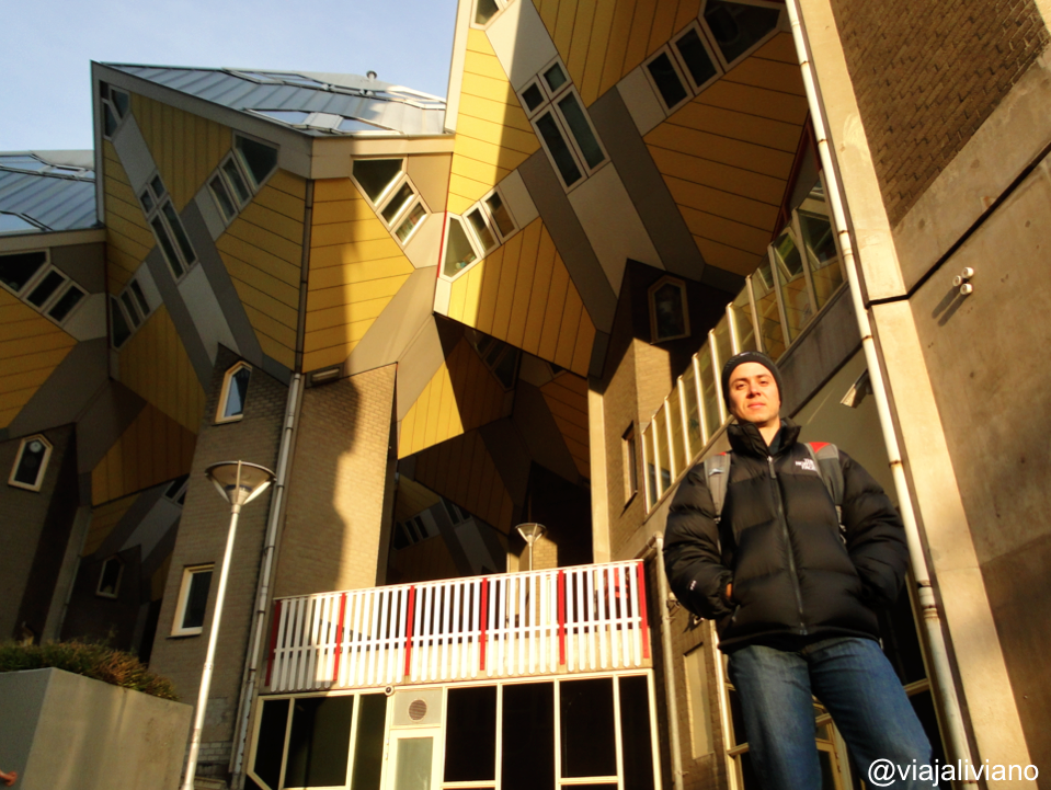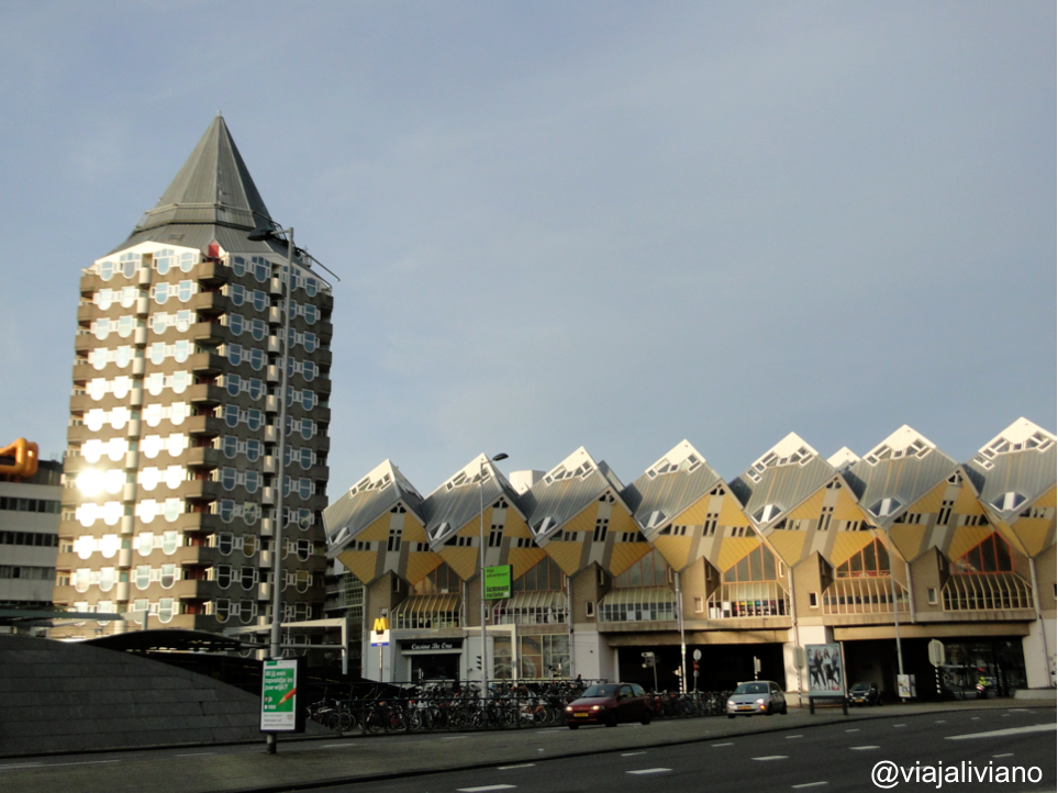 Sin dejarnos desanimar, tomamos un mapa turístico e hicimos rápidamente el recorrido por el puerto y algunos de los lugares de interés de la zona, entre los que el Puente Erasmo, era el principal de ellos. Al final del recorrido que duró por hora y media más o menos, llegamos al lugar del que habíamos leído en nuestras guías de viaje y el que fue, tal vez la principal razón para venir a esta ciudad. Las casas cubo o Kubuswoing que diseñadas por un arquitecto llamado Piet Blom, se han convertido en un símbolo de la ciudad famoso en todo el mundo.
