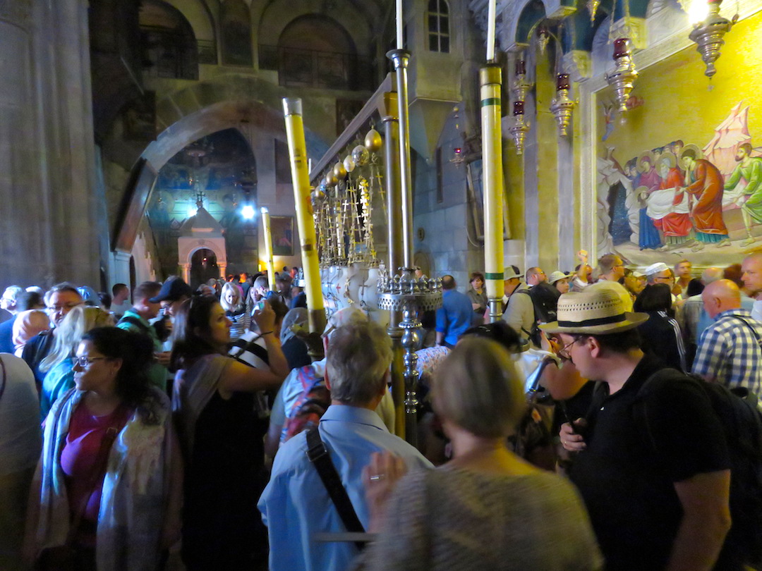 Pues bien, Jesús fue sentenciado y condenado a muerte en Jerusalén. Aún pueden identificarse lugares históricos tales como el lugar donde Jesús enfureció con los comerciantes por estar vendiendo sus baratijas al lado del Gran Templo y los puntos de su procesión hacia el Calvario o la Gólgota, donde las mítica cruz le quitó la vida. Y es en este punto, donde se encuentra quizás el lugar más sagrado para el cristianismo, la Iglesia del Santo Sepulcro. Dicen que allí reposan los restos de Jesús, la cruz donde murió y la piedra donde yació su cuerpo tras la crucifixión. El lugar es custodiado por una familia Musulmana que solo permite tocar la famosa piedra y ver la parte posterior del sepulcro tapiado con una gran piedra de mármol. La cruz fue guardada tras ser constantemente despedazada por devotos ansiosos de tener un único recuerdo de sus viajes por estas tierras. Pese a la gran cantidad de gente y a la larga fila de hora y media que tuvimos que hacer para ver la lápida de la tumba, bien vale la pena la visita más por la energía que se desprende del trance de cientos de personas que por las mismas reliquias que allí se alojan.