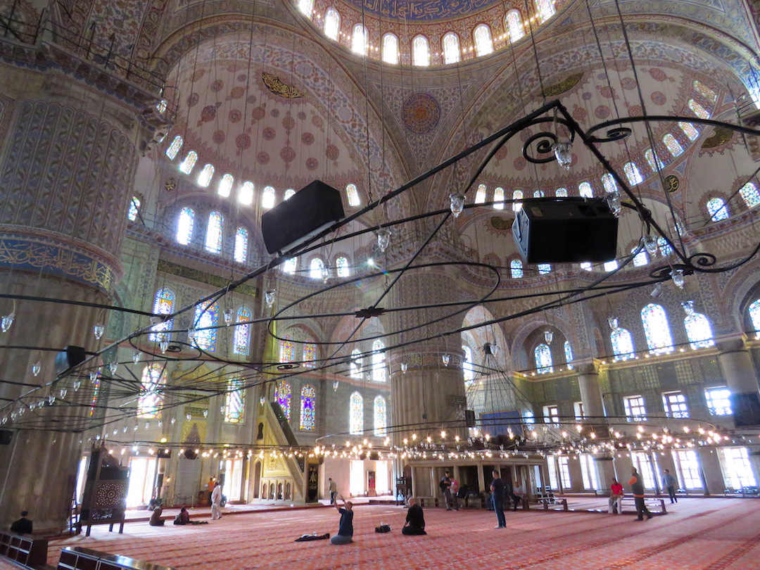 Ubicada a tan solo unos metros de Sultanahmet, esta maravilla arquitectónica es una visita obligada. Debido a que el lugar, que antes fue basílica y luego mezquita, fue convertido de manera inteligente en museo en vez de dejarlo como lugar de culto, hay que pagar un ingreso de unos 40 liras (USD 10 aprox) por persona. La recorrimos sin guía, pese a que es recomendado hacerlo, y para nosotros fue bastante decepcionante ver que la mayor parte de la estructura se encuentra en remodelación, con lo cual no se puede acceder. Los andamios, ubicados en la parte central, apenas dejan visualizar la enorme cúpula, de la que se dice que cambió por siempre la historia de la arquitectura. No obstante, pudimos disfrutar de sus hermosos mosaicos y de la vistas desde las terrazas del segundo piso siempre adornadas con los monumentales medallones musulmanes con los nombres de grandes personajes del Islam.
