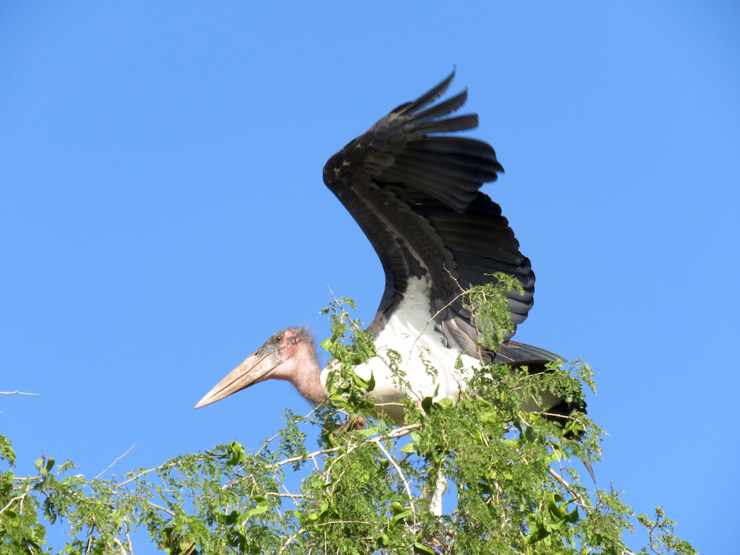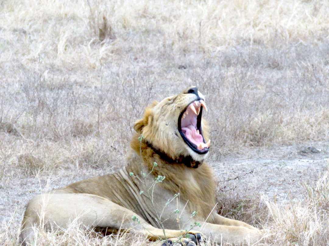Afortunadamente al llegar al parque sobre las 9 pm accedieron a dejarnos entrar y nos llevaron en sus propios vehículos hasta el campamento, ubicado a 15 km. Esa noche cenamos lo que pudimos y armamos nuestra carpa en medio de los árboles, pero resultó ser muy pequeña y tuvimos que dejar la mochila afuera porque no cabíamos. A todo este largo día se sumó un gran disgusto, como no llegamos a tiempo, nuestro cupo para hacer el “game drive” de la mañana siguiente lo habían cedido a otros visitantes y no tendríamos la opción de hacer esa salida que, sin duda, era la más importante para nosotros.