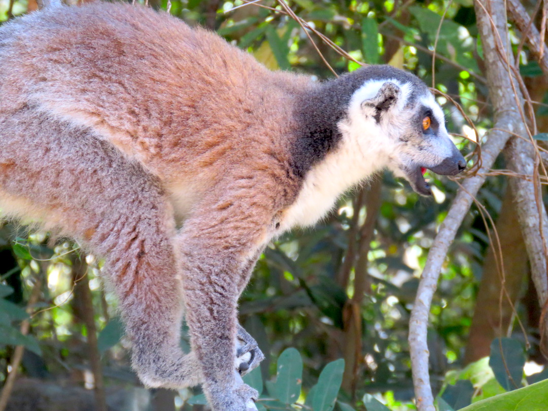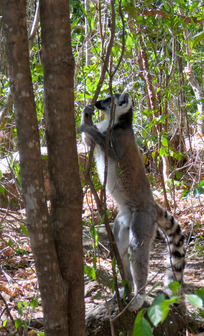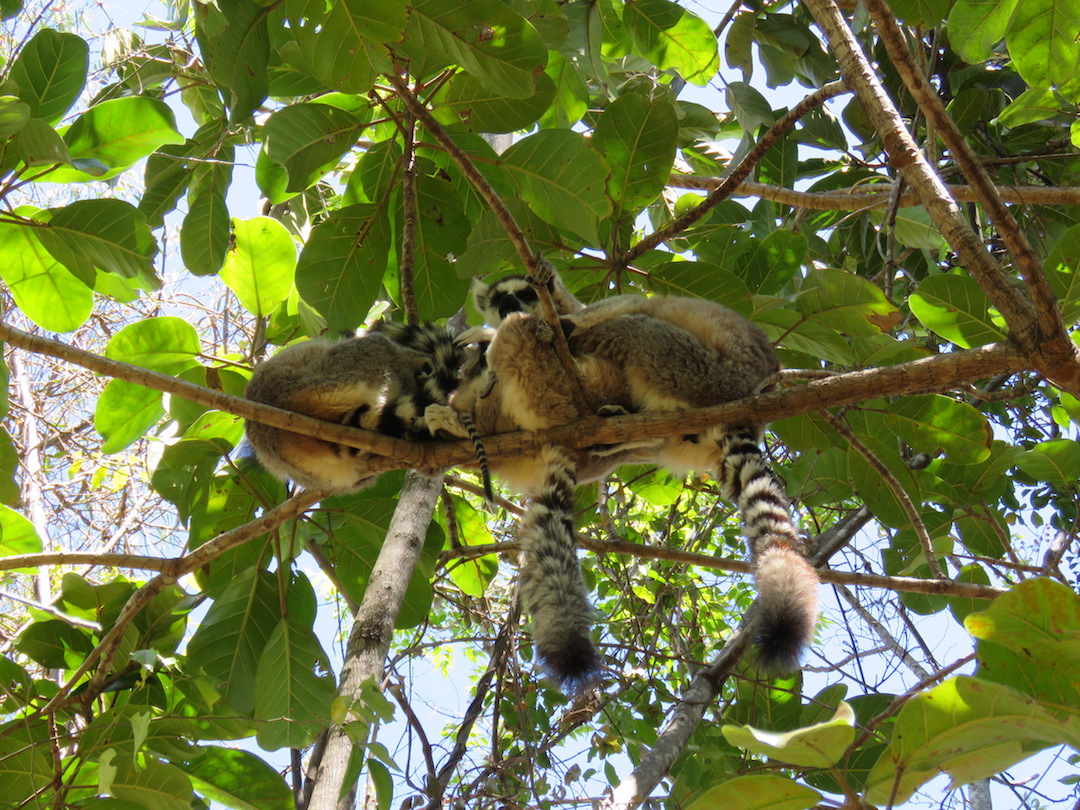 En esta zona también tuvimos nuestro primer encuentro con los lémures, los animales más únicos de la isla (famosos por el Rey Julien de la película animada Madagascar). En solo unos minutos vimos lémures cafés, blancos y de cola anillada. Como pudimos comprobar al conocer más especies de esta familia, los lémures son muy diversos entre si, los hay de diferentes colores, tamaños que van desde los 30 gramos hasta los 10 kg, hay nocturnos y diurnos, carnívoros y vegetarianos, monógamos y polígamos… en fin una variedad como pocas.