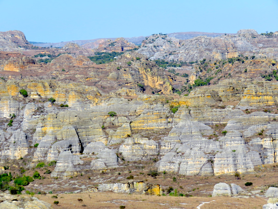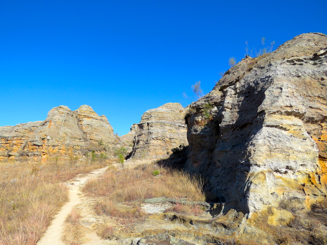 Este parque natural es famoso por sus cañones y formaciones rocosas. Nosotros hicimos base en la población de Ranohira desde donde contratamos un guía en la oficina del parque e hicimos un recorrido de 6 horas. Fue aquí donde empezamos a ver la dura deforestación del país, se dice que el 80% del bosque primario fue talado y la primera parte de nuestro recorrido transcurrió entre formaciones rocosas y arena.