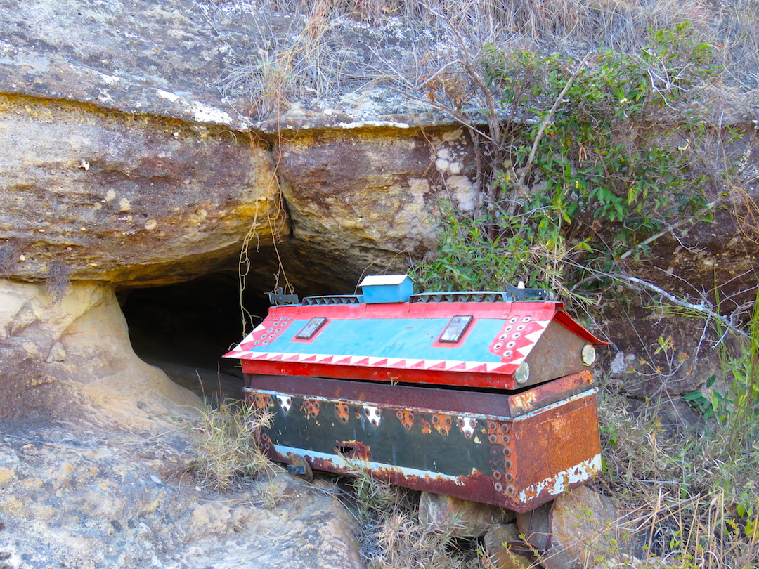 Nuestro siguiente destino fue Ambalavao, lugar desde donde se puede visitar el Parque de l’Andringitra el cual estaba cerrado ya que algunos turistas habían sido asaltados recientemente en su campamento. Como alternativa se puede hacer una caminata al cerro Camaleón (de 2 ó 3 días) o visitar la reserva Anja. Nosotros optamos por esta última opción dado nuestro ambicioso itinerario y el poco tiempo que teníamos. Como en todas las zonas protegidas del país la visita se hace con un guía, quien nos mostró la ruta, las cuevas funerarias, la vegetación y la fauna de la zona.