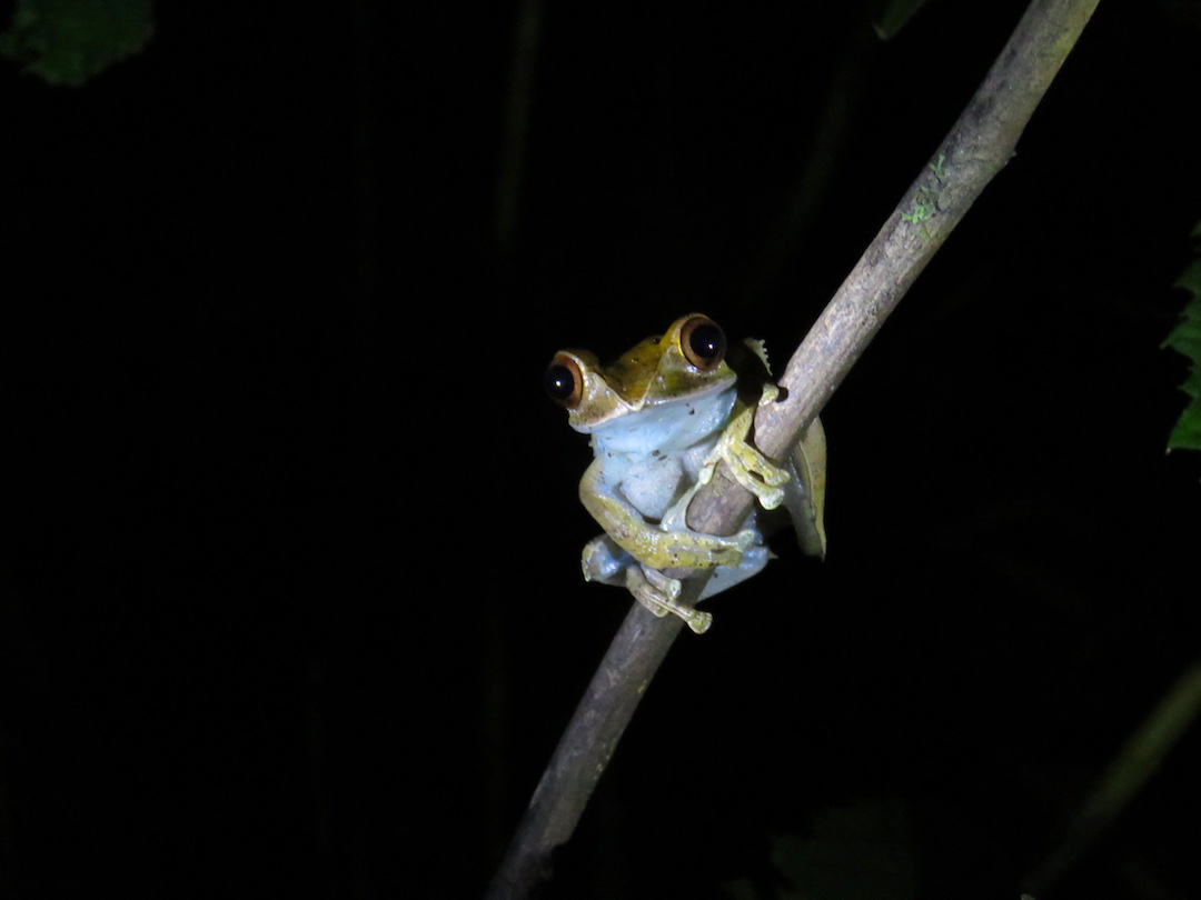 La caminata nocturna se hace en la carretera límite del parque y pudimos ver los lémures ratón, los más pequeños de todos, varios camaleones, arañas y ranas.