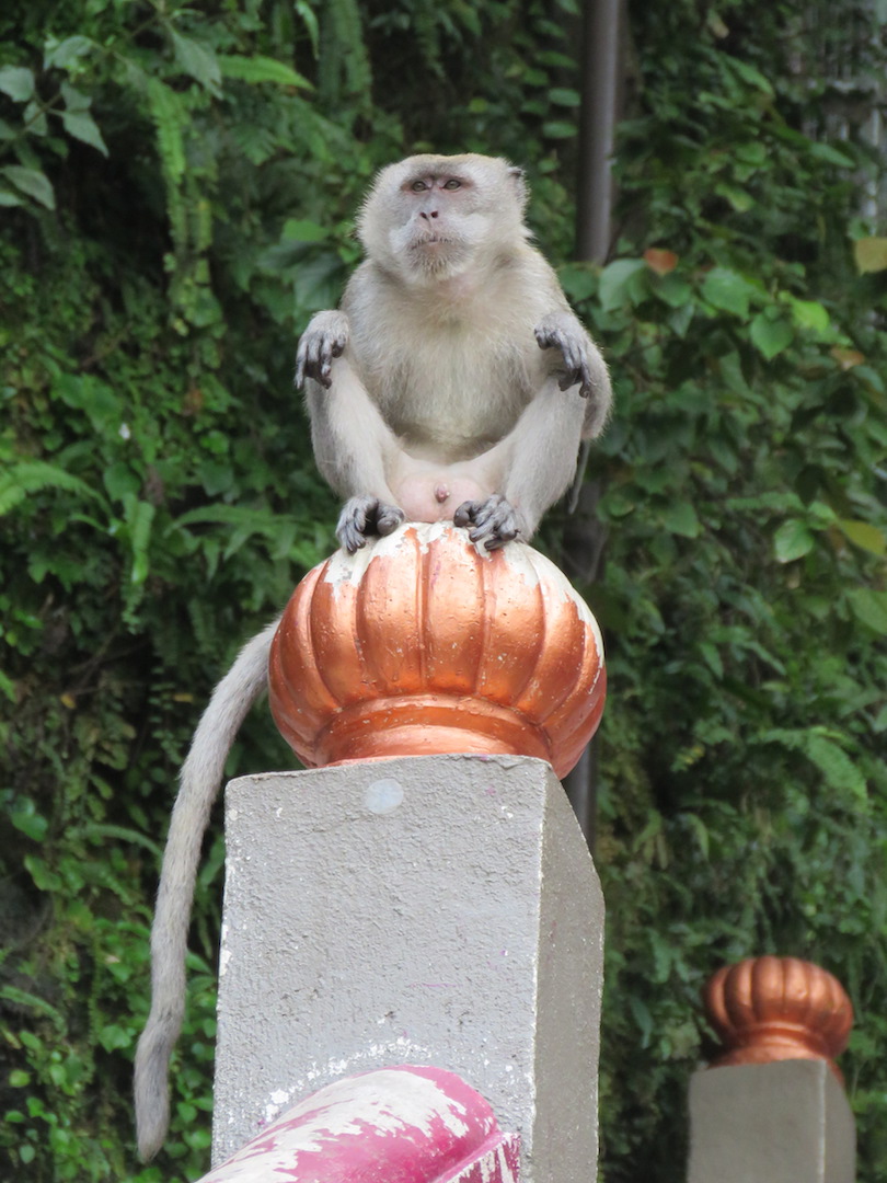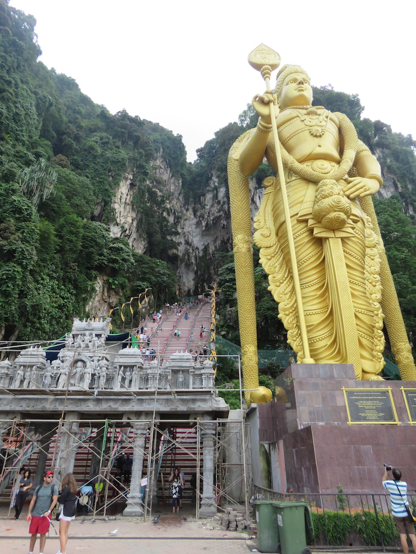 Otro de los días lo dedicamos a visitar las Cuevas Batu. Estas cuevas que se encuentran a 13 km de la ciudad son un lugar de peregrinaje para los hindúes ya que allí se encuentra el templo dedicado a Murugan. La cueva principal, ofrece un espectáculo natural impactante con sus dos bóvedas a las que se accede gracias a 272 escalones. El lugar además es residencia de los macacos (monos de cola amarilla que son muy comunes en el país) los cuales están siempre dispuestos a robar la comida de los turistas.