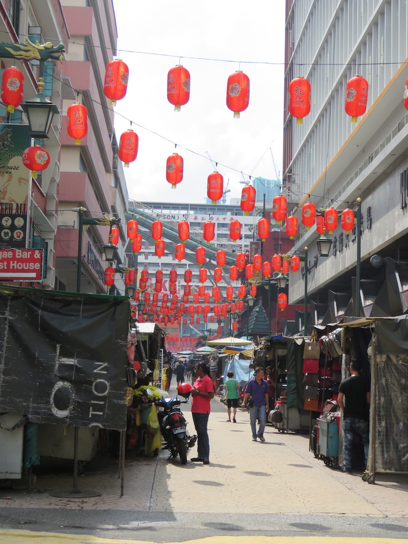 Elegimos un alojamiento en esta zona por ser central y ofrecer buenos precios, sin embargo la experiencia de la ciudad es muy diferente a lo que se encuentra en sus calles sucias y siempre llenas de ruido y comercio. En el barrio Chino es posible visitar algunos templos budistas, un templo hindú, el Mercado Central y un par de calles peatonales de baratijas e imitaciones.