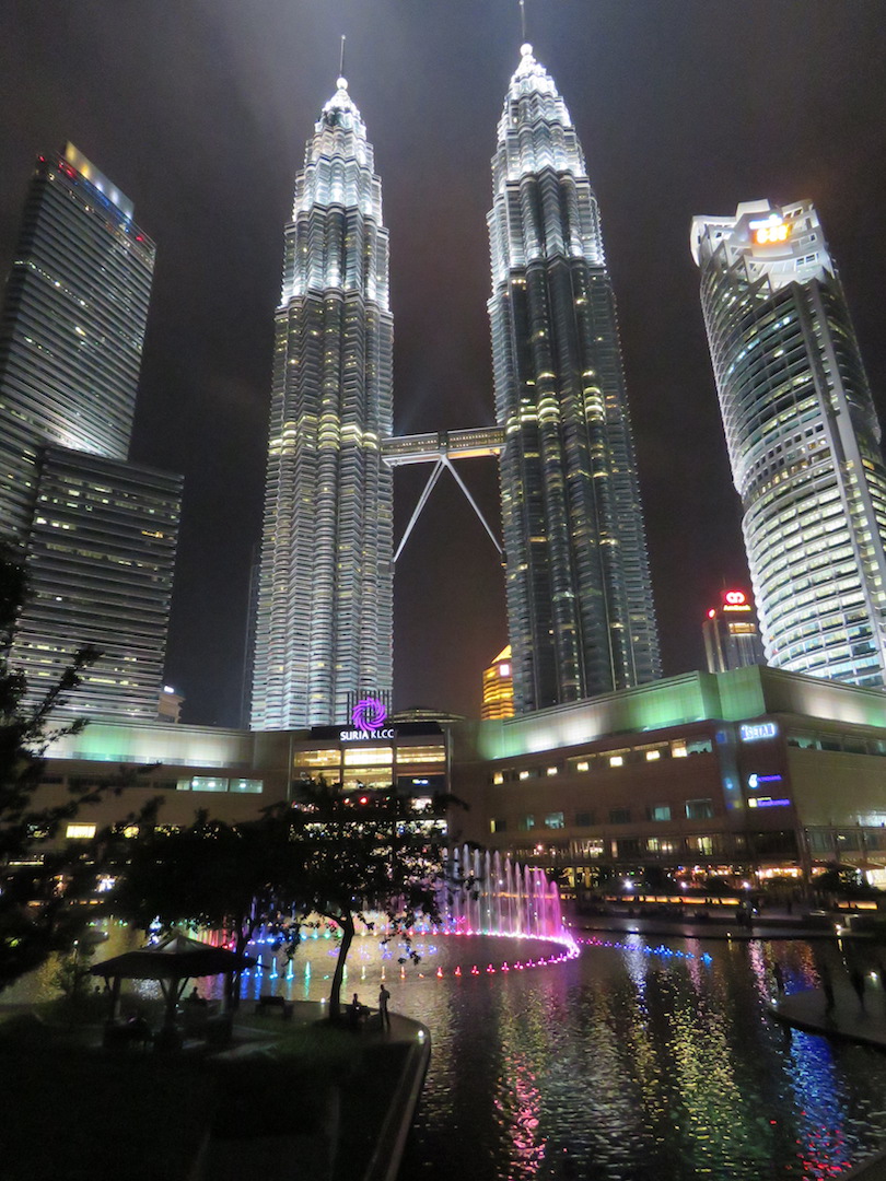 El símbolo de la ciudad puede verse desde diferentes puntos, sin embargo nada se compara a admirarlas desde el parque KLCC, tanto de día como de noche. Su altura es de 453m y entre 1998 y 2003 fueron el edificio más alto del mundo (hoy ocupan la posición 11).