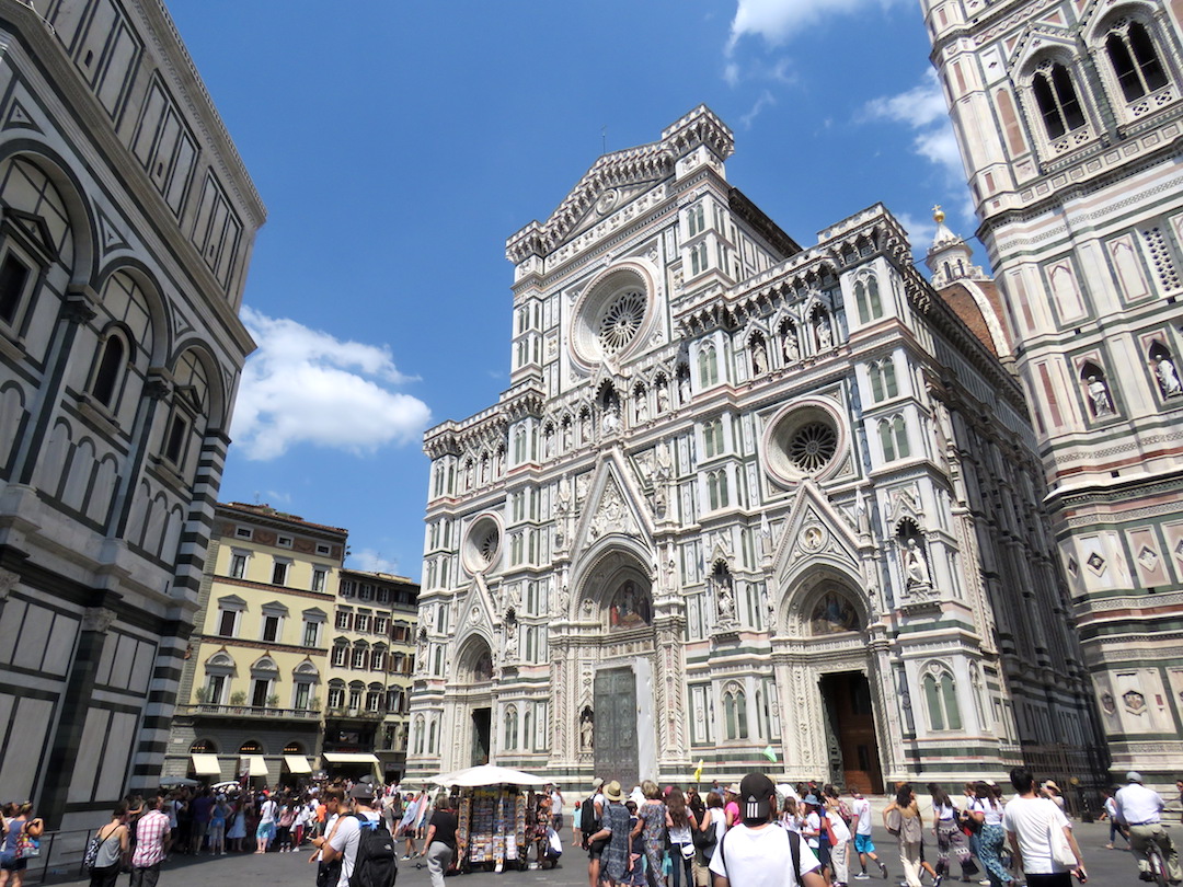 Florencia es una ciudad indiscutiblemente hermosa. Atravesada por el río Arno, tiene suficientes museos para que la “Tarjeta Firenze” (€72) permita la entrada a 72 de ellos durante 72 horas, incluyendo el “Uffizi” el cual contiene la colección más grande de arte renacentista del mundo, donde se pueden apreciar, entre otras, obras de Botticelli y Leonardo Da Vinci. La recomendación (como en todas las grandes atracciones italianas) es comprar los boletos con anticipación por internet, lo cual si bien reduce el tiempo de espera no nos salva de hacer una fila, y otra, y otra… y de sentir que seguimos la misma procesión en medio del museo.
