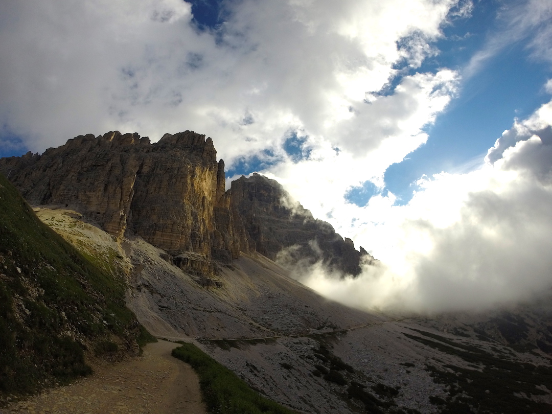 El recorrido terminó antes de lo planeado con un largo pero hermoso ascenso hacia el refugio Auronzo en donde a pesar de contar con un día principalmente nublado, pudimos apreciar por algunos instantes las tres majestuosas rocas que inertes fueron la escuela de entrenamiento del mítico montañista Reinhold Messner y se han dado el lujo de ser las protagonistas en innumerables postales.