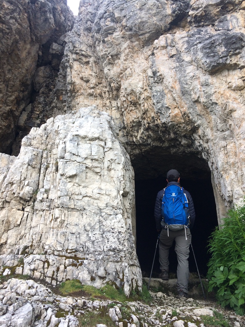 Muy temprano en la mañana siguiente, salimos con buenos implementos para una larga caminada y, tras cerca de hora y cuarto manejando y pagar un costoso parqueadero de 24 euros por día, llegamos al Refugio Auronzo, para hacer el circuito de 10 km que da la vuelta por las famosas formaciones de piedra “Tre Cime”. El recorrido estaba completamente marcado y rápidamente nos llevó hacia los refugios Lavaredo y Locatelli, los cuales, en el más perfecto orden, lucen renovados, con cocina, cómodas habitaciones y restaurante en el que sirven un buen café al mejor estilo italiano. Durante el recorrido, también pudimos apreciar los bunkers hechos por los soldados durante la Primera Guerra Mundial, cuando Italia se enfrentó a Austria y tras la cual se dio el nacimiento del fascismo y la llegada de Mussolini al poder. Algo que para bien o para mal, cambiaría la historia de este país para siempre. Mientras recorríamos las intrincadas cuevas, situadas en las colinas más empinadas, podíamos imaginar la vida de aquellos soldados que, exponiendo su vida, tenían que afrontar las duras condiciones climáticas de la región.