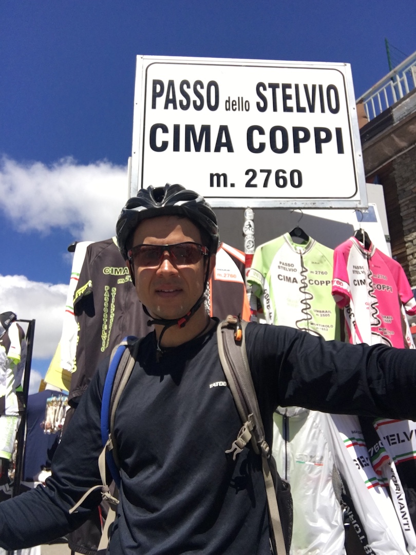 El ascenso me tomó poco menos de 2 horas y media y puedo decir que hacerlo ha sido una de las mejores experiencias de mi vida, no solo por sus encantadores paisajes y sus míticas 35 empinadas curvas en zig-zag atravesando la montaña, sino porque pude imaginarme a todos los grandes escaladores, colombianos y no colombianos, que literalmente revientan sus piernas en esta cuesta haciendo uno de los deportes más bellos, el ciclismo. En la parte más alta del paso, a tan solo unos cuanto kilómetros de Suiza y tras haber superado unos 1.500 metros de desnivel, me sentí inmensamente feliz por haber escogido, hace ya muchos años, el camino de deportista aficionado que literalmente ha marcado positivamente todos los aspectos de mi vida.