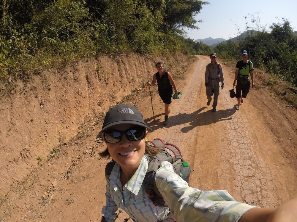 Comenzamos el camino a unos 20 kilómetros de la ciudad en la aldea Sin Oudom en compañía de “E” (nuestro guía principal), “Hug” (el guía local) y Sylvie (turista francesa) a través de un terreno plano que cruzaba el río Nam Tha y otros arroyos en múltiples ocasiones. Como no había puentes ni caminos de piedra para atravesarlos, decidimos usar sandalias para esos primeros kilómetros. El medio día nos sorprendió con una abrazante calor y una jungla ya espesa colmada de gigantes árboles en donde ni el sol ni el viento podían penetrar. Ya con nuestras botas puestas tomamos nuestro primer almuerzo compuesto para pollo, tofu, berenjena, chiles, ranas y el famoso sticky rice, toda una exquisitez.