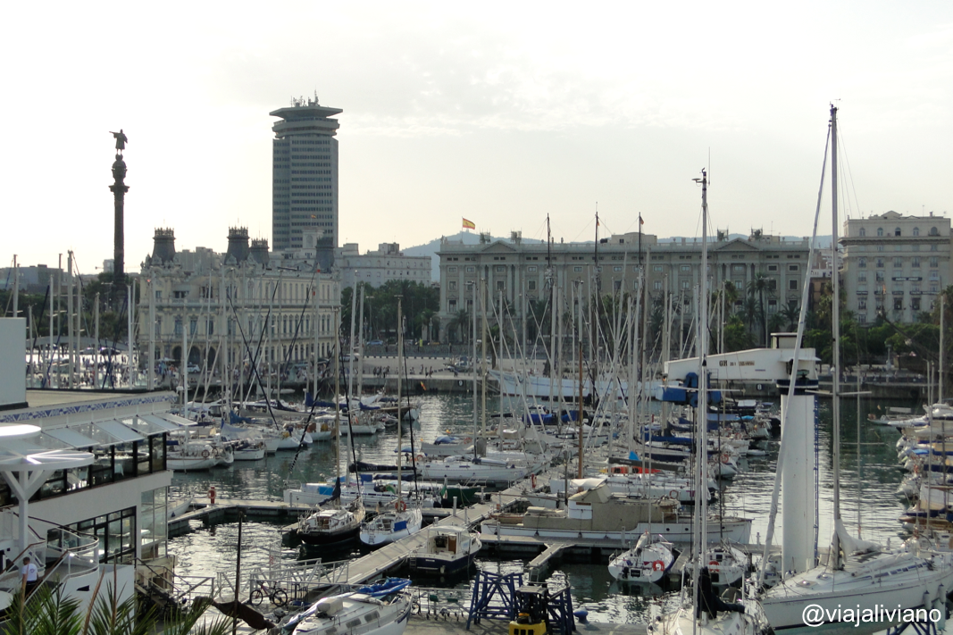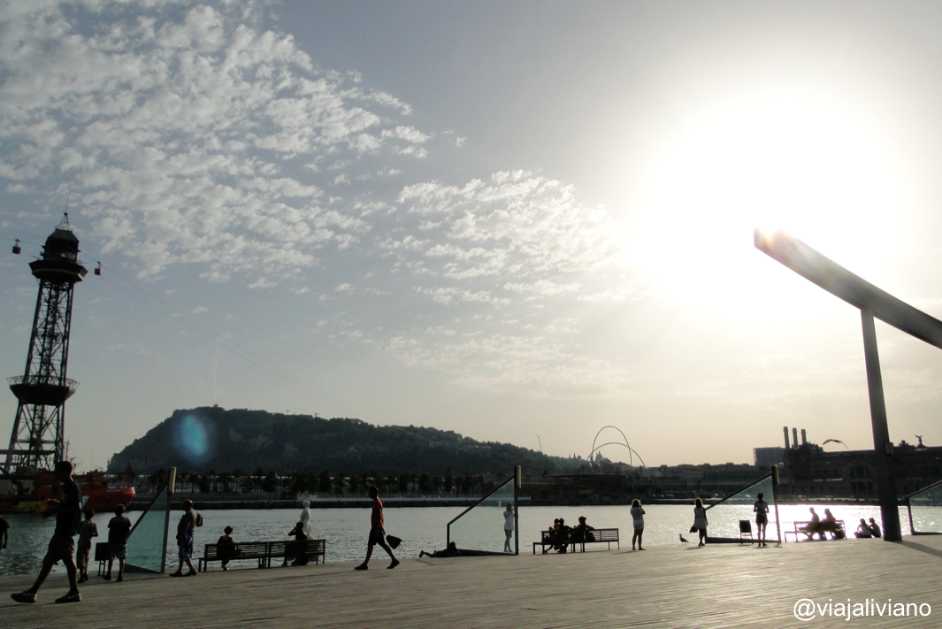 Sólo tuvimos el final de la tarde para disfrutar un poco por el tiempo que perdimos denunciando el robo, caminamos por la zona de la Rambla del Raval donde hay restaurantes y cafés al aire libre y luego la Plaça del Portal de la Pau y el corredor hasta el centro comercial Maremagnum desde donde contemplamos el atardecer sobre el mar y el lento movimiento del Teleférico del Puerto.