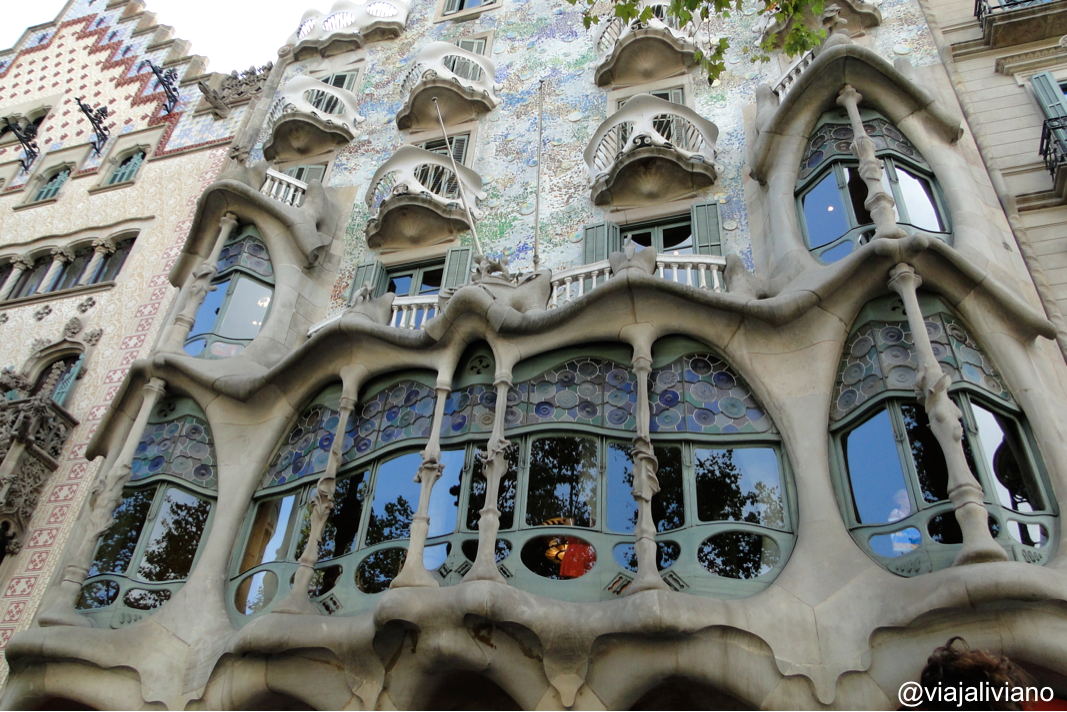 En la tarde recorrimos la zona del Paseo de La Gracia, visitamos las casas Batlló y Milà (o La Pedrera), lugares famosos por la arquitectura de Gaudí. Sólo las vimos desde afuera y de las dos mi favorita es la casa Battló por los colores de la fachada y las formas de “calaveras” de los balcones. Ambas casas se pueden visitar tanto en el día como en la noche y ofrecen diferentes planes para los turistas.