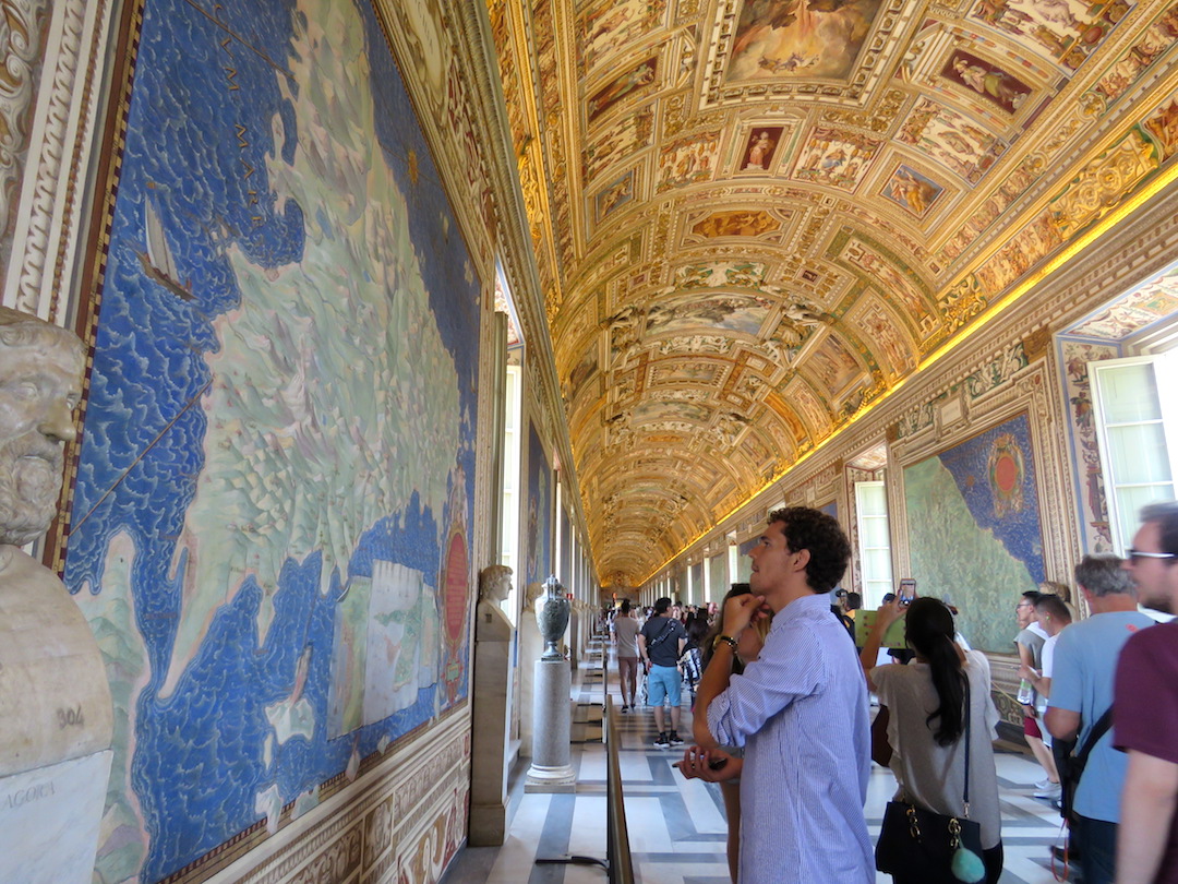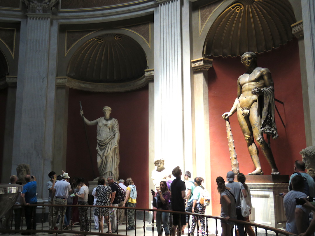 Pues bien, al día siguiente nos decidimos armarnos de paciencia y explorar por alrededor de cuatro horas los famosos Museos Vaticanos. Al igual que los boletos del Coliseo, estos los habíamos adquirido previamente por Internet y a una hora establecida, decisión de nuevo muy recomendable teniendo en cuenta las más de dos cuadras de fila en medio de un sol espectacular que se formaba a la hora de nuestra llegada. Ni en Disneylandia había visto yo estas hordas de gente que se funden en una masa amorfa moviéndose lentamente por los diferentes pasillos que juntos suman más de 7 kilómetros de recorrido.