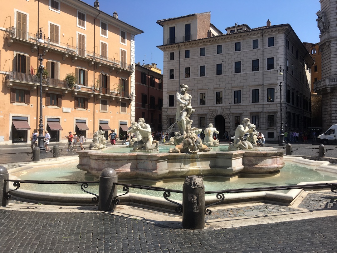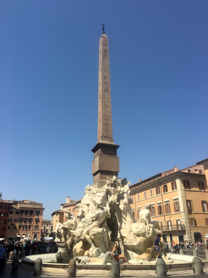 El día siguiente, tal como lo habíamos previsto, nos dedicamos a explorar el centro histórico lo cual fue para mi redescubrir un lugar que ya había recorrido en tres ocasiones, a 12 kilómetros por hora, los días anteriores. Visitamos entonces el Altare della Patria, el Río Tíber, La Piazza Navona con su majestuoso Obelisco construido e importado directamente de Egipto y su espectaculares fuentes, y el impresionante Panteón de Adriano del que se dice, y con total razón, es el monumento mejor preservado de la Roma Antigua. Con más de 2.000 años de antigüedad su gran Domo de concreto es el más grande alguna vez construido. Terminamos el recorrido en la Fontana de Trevi que está reluciente tras su última restauración del año 2015. Cuenta la tradición que debes arrojar una moneda a la fuente si quieres volver a Roma, hecho que de forma muy curiosa le deja a la ciudad un promedio de 3.000 euros por día.