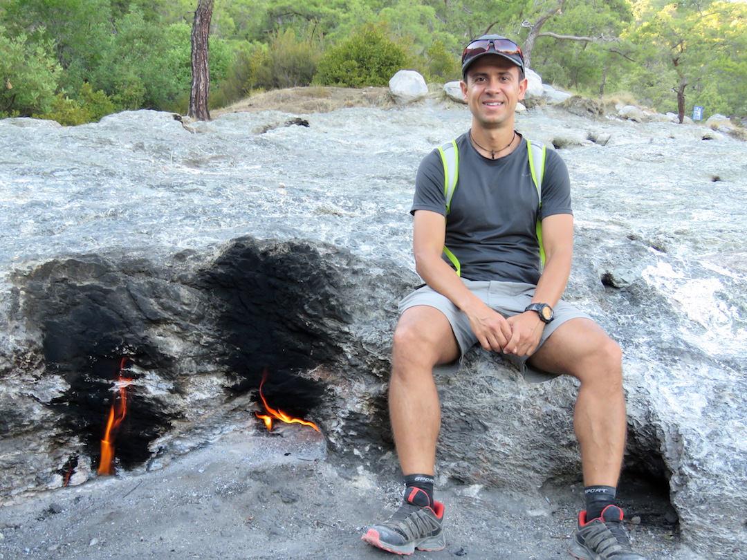 Para llegar a esta pequeña ciudad tomamos un mini bus (llamados localmene Dolmus) que iba de Antalya hacia Finike que nos dejó en la entrada donde paraba el dolmus hasta Cirali. El dolmus pasa cada hora entre las 8:30 am y las 7:30 pm. En el recorrido desde Antalya pudimos ver el legendario Monte Olimpo, al cual se puede subir en teleférico. Una vez en Cirali, ocupamos la tarde en subir en busca de las llamas de Chimaera, unas flamas perpetuas de donde se dice se tomó el fuego para la primera llama olímpica.