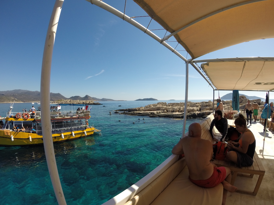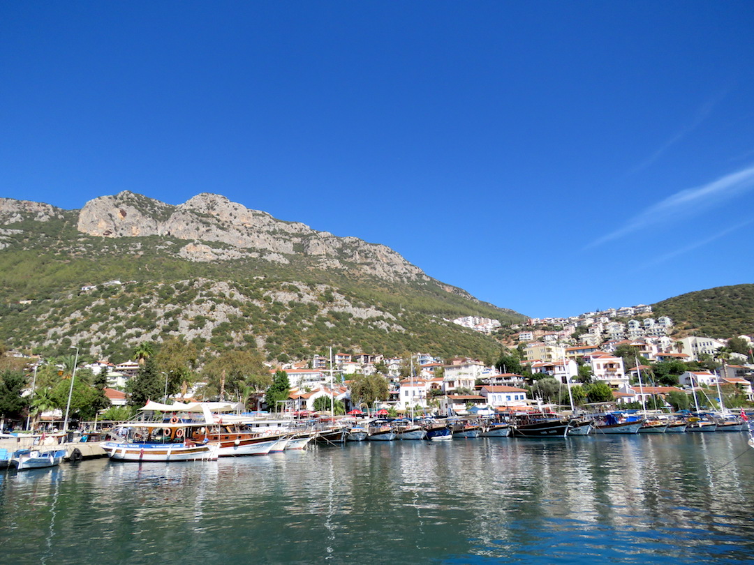 Luego de descansar en Cirali una noche, nos desplazamos hacia Kas, para hacerlo tomamos de nuevo el Dolmus hasta la carretera principal y desde allí un bus. Kas es una ciudad tranquila y hermosa, donde sobresalen las paredes blancas y las flores en los balcones. Tiene bastante desnivel lo que le da un aspecto “típico mediterráneo”. Allí nos quedamos 5 días, de los cuales uno lo dedicó David a bucear y en otro hicimos un nuevo tramo de la ruta Licia. El resto del tiempo lo pasamos en la ciudad que cuenta con algunas ruinas interesantes.