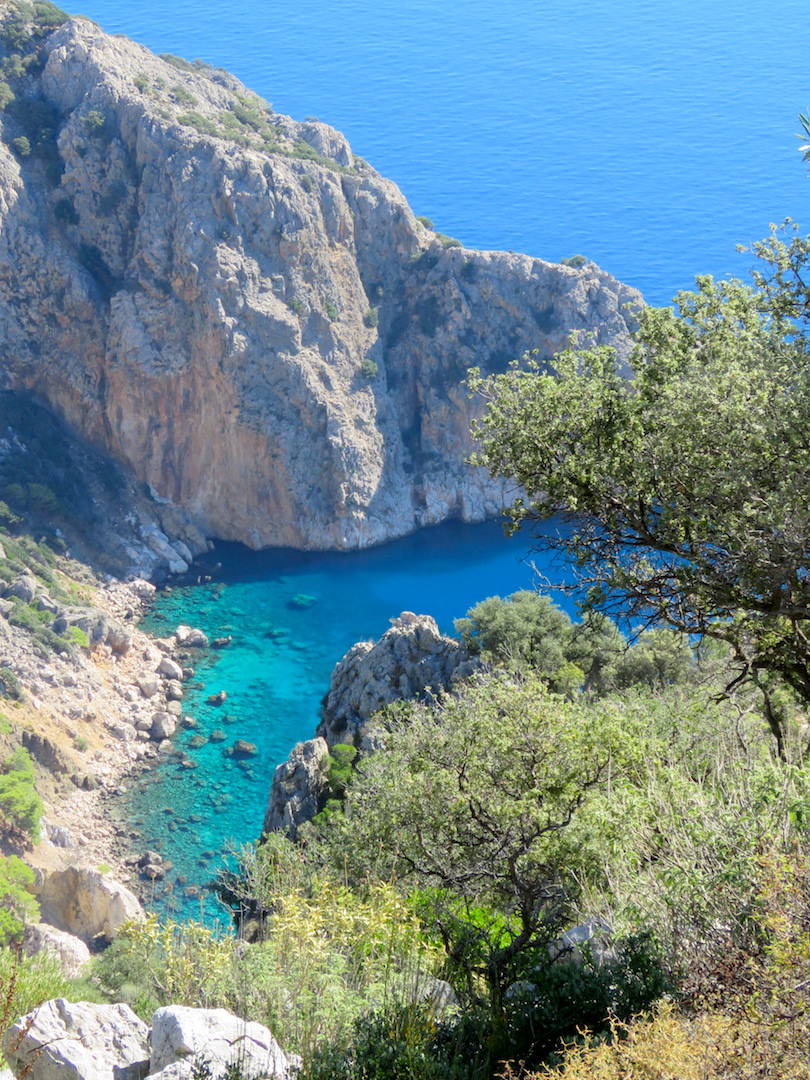 Este día la caminata fue mucho más cercana a los acantilados y nos permitió admirar el hermoso color del mar y algunas de sus formaciones. Había muchos más ascensos y descensos que el primer día, en la parte final llegamos al faro Gelidonya y descansamos en una de las playas. Al llegar a Karaoz nos llevamos una sorpresa ya que era una población muy pequeña en la que ni siquiera en los hoteles encontrábamos personas atendiendo y en general en el pueblo no fue fácil comunicarnos en inglés. Finalmente por casualidad nos cruzamos con el dueño de uno de los hoteles quien nos prestó el servicio de transporte hacia Cirali.