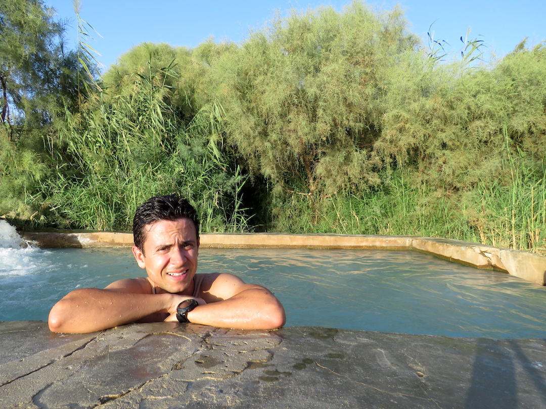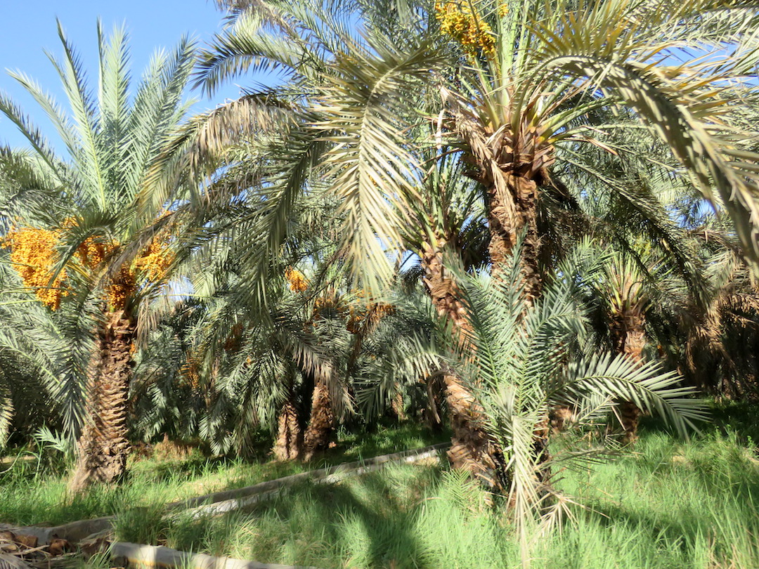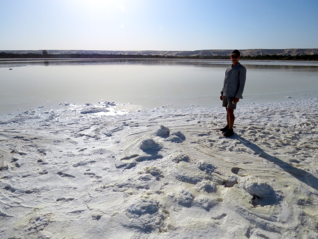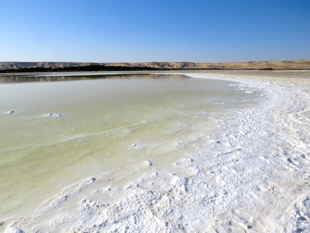 Desde nuestro hotel nos organizaron un recorrido de un par de horas en el que, después de atravesar una zona de palmeras y probar los dátiles directamente del árbol, llegamos al lago salado. Ya me imaginaba la decepción de los antiguos nómadas viendo este lago desde lejos para al final descubrir que no era agua potable. El lago ofrece un espectáculo interesante, en las orillas debido a la evaporación del agua se pueden observar bloques de sal que son usados para la construcción.