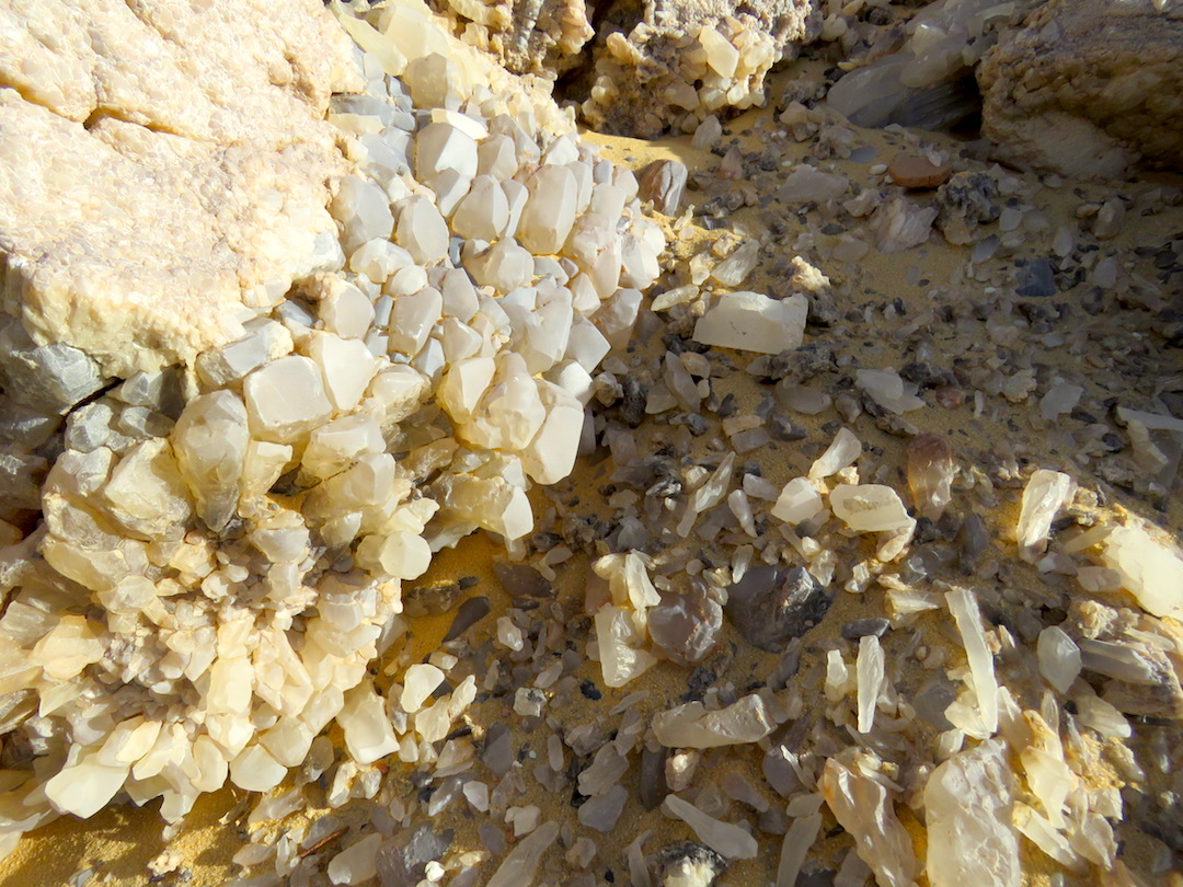 Una de las paradas que hicimos en la ruta de Bahareya a Farafra fue en esta montaña donde se pueden observar pequeñas formaciones de cristales, los cuales se desprenden fácilmente de la roca.