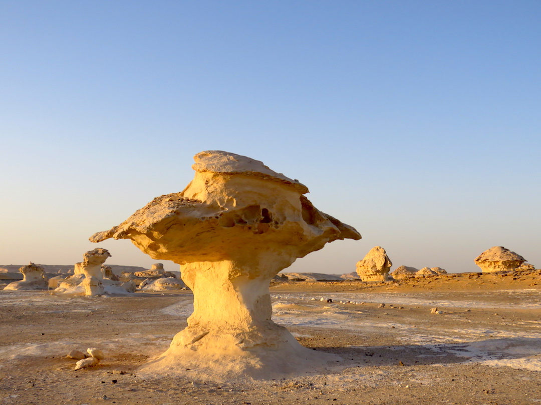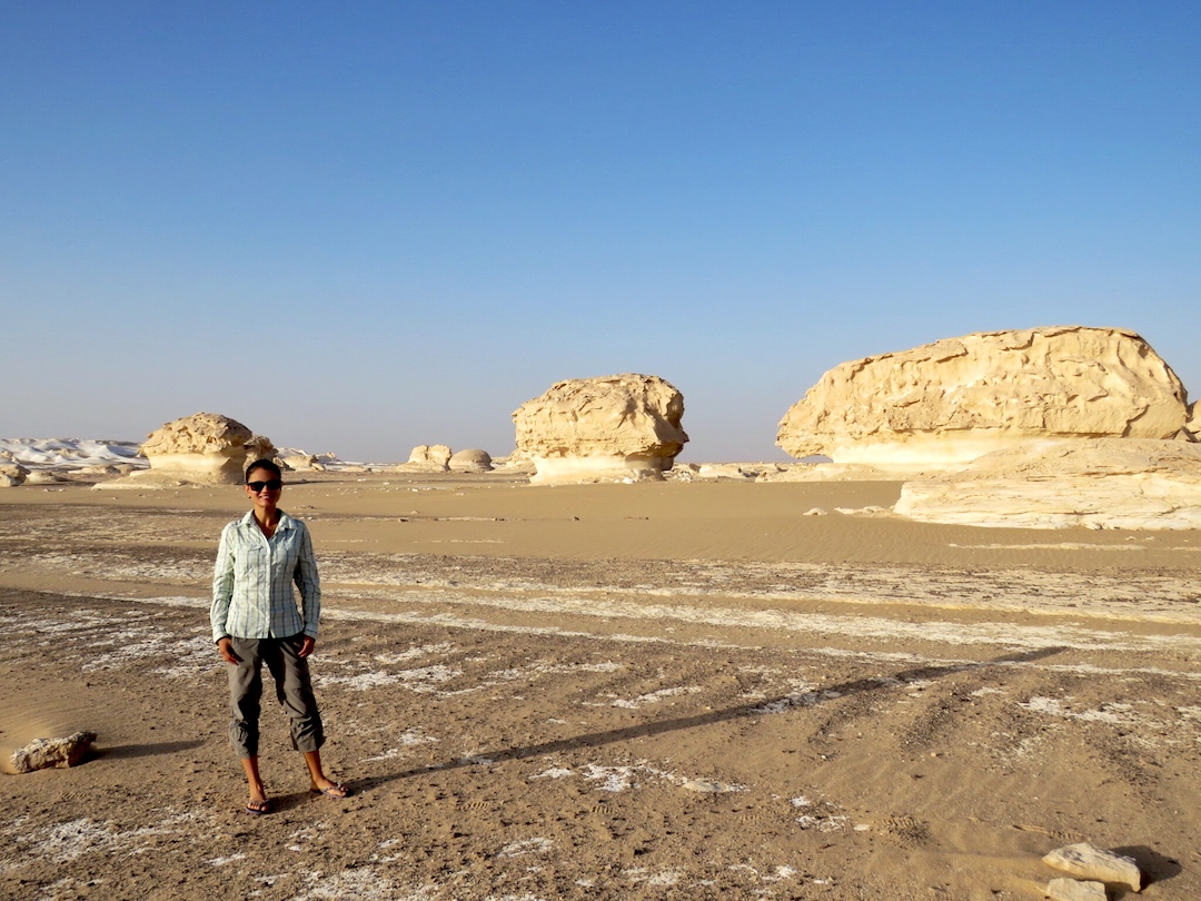 Ya adentrándonos en el desierto blanco, pasamos por una zona en la que, debido a la erosión, las piedras han tomado formas caprichosas como champiñones, algunas con nombres propios como el de la gallina o los helados.