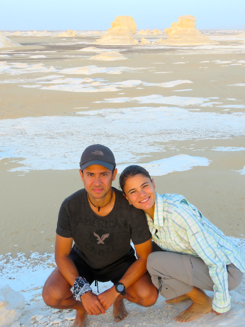 Sarah, una de las empleadas del Freedom hostel, nuestro alojamiento en El Cairo, es de esas personas que realmente te hace sentir como en casa. Nos ayudó a organizar nuestra ruta por Egipto, nos dio información invaluable sobre los destinos y nos sugirió, ante nuestro interés por ir al Sahara, tomar un tour a los desiertos blanco y negro. Confirmamos las fechas, hicimos el pago y… ¡no supimos más! Por alguna razón inexplicable no pedimos más detalles y así comenzó nuestra ruta hacia el desierto, dejándonos llevar por el conductor del hotel hasta la estación de mini buses, por el conductor del mini bus que nos dejó en manos del transfer del hotel en el destino, por el del hotel que nos llevó al punto de inicio del tour, por los del tour que nos montaron en el mini bus de regreso a El Cairo… nunca sabíamos para donde íbamos, quien nos recibiría, qué estaba incluido, en fin… por primera vez en muchos años íbamos en piloto automático sin tener total control de nuestro recorrido.