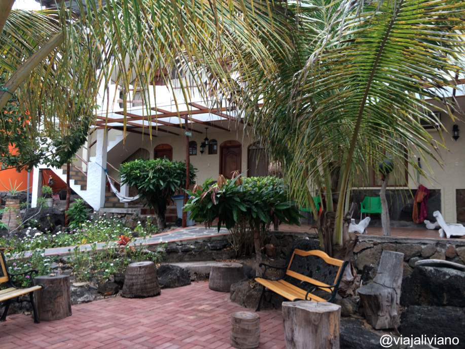 Nuestro primer día en Galápagos estuvo lleno de lugares por descubrir. Desde el aeropuerto de San Cristóbal caminamos hasta el Hostal Casa De Laura (10 minutos), donde Laura misma nos recibió con gran amabilidad. La habitación era amplia e impecable, pero sin ningún lujo ni pretensión. Una cama doble, un catre, una nevera desconectada, un televisor minúsculo, un escritorio con su silla y un baño.