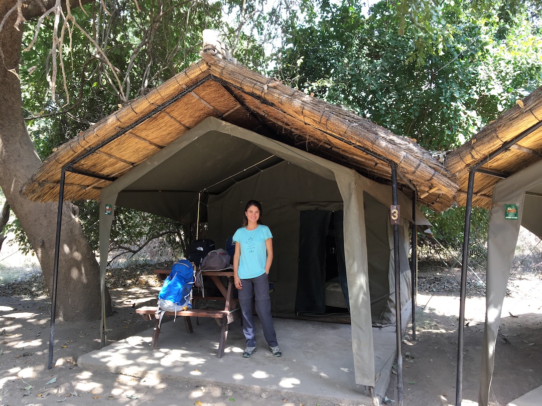 Tras unas doce horas en transporte público desde Lusaka, llegamos al campamento Croc Valley ubicado a sólo un par de kilómetros de este gran destino. Pese al exhorbitante precio de USD 110 por persona por día que acordamos pagar, sabíamos que estábamos en el lugar más económico posible y que su tarifa distaba mucho de los lujosos Lodges cercanos que podían llegar hasta los USD 700 dólares por noche.