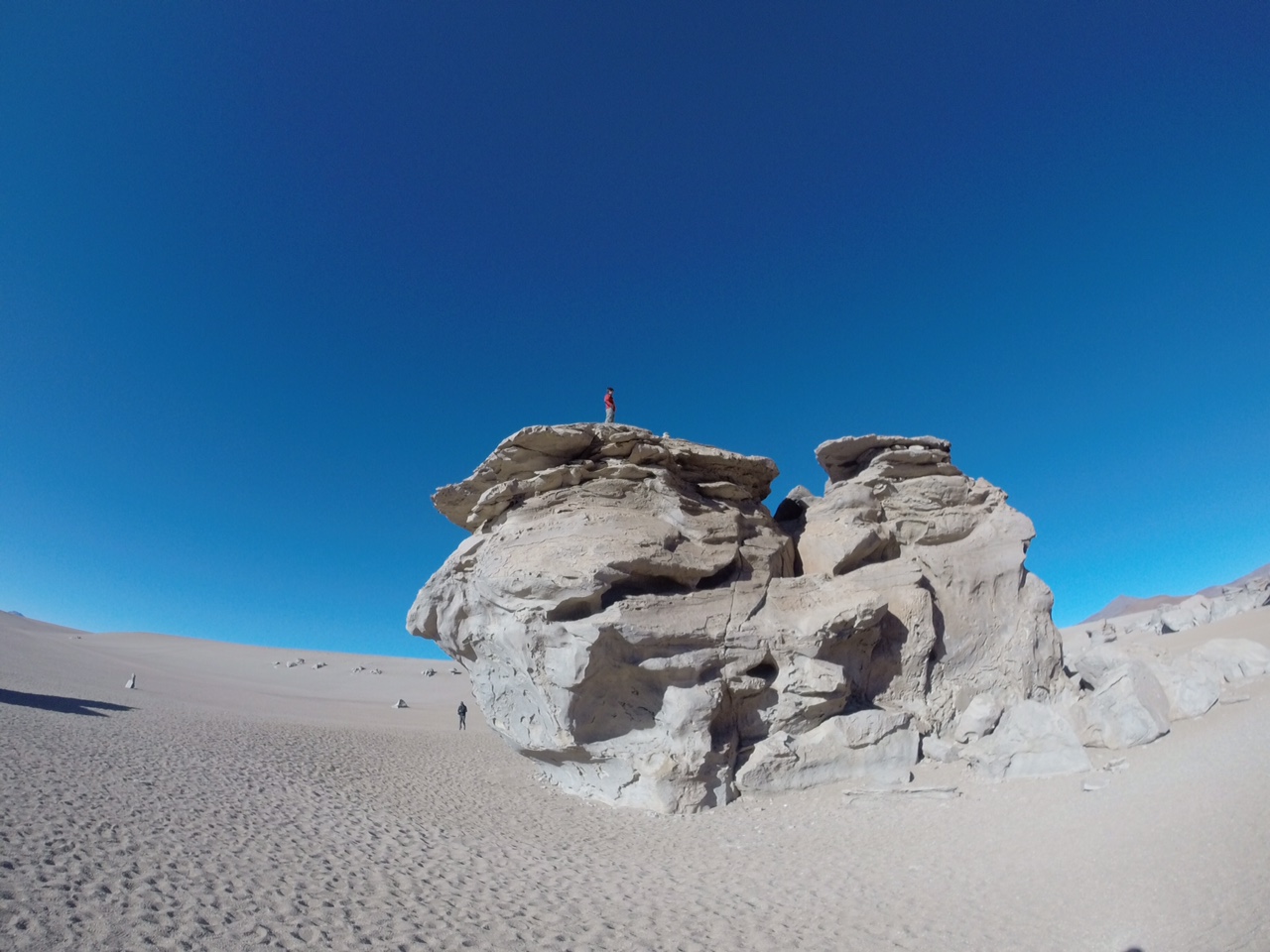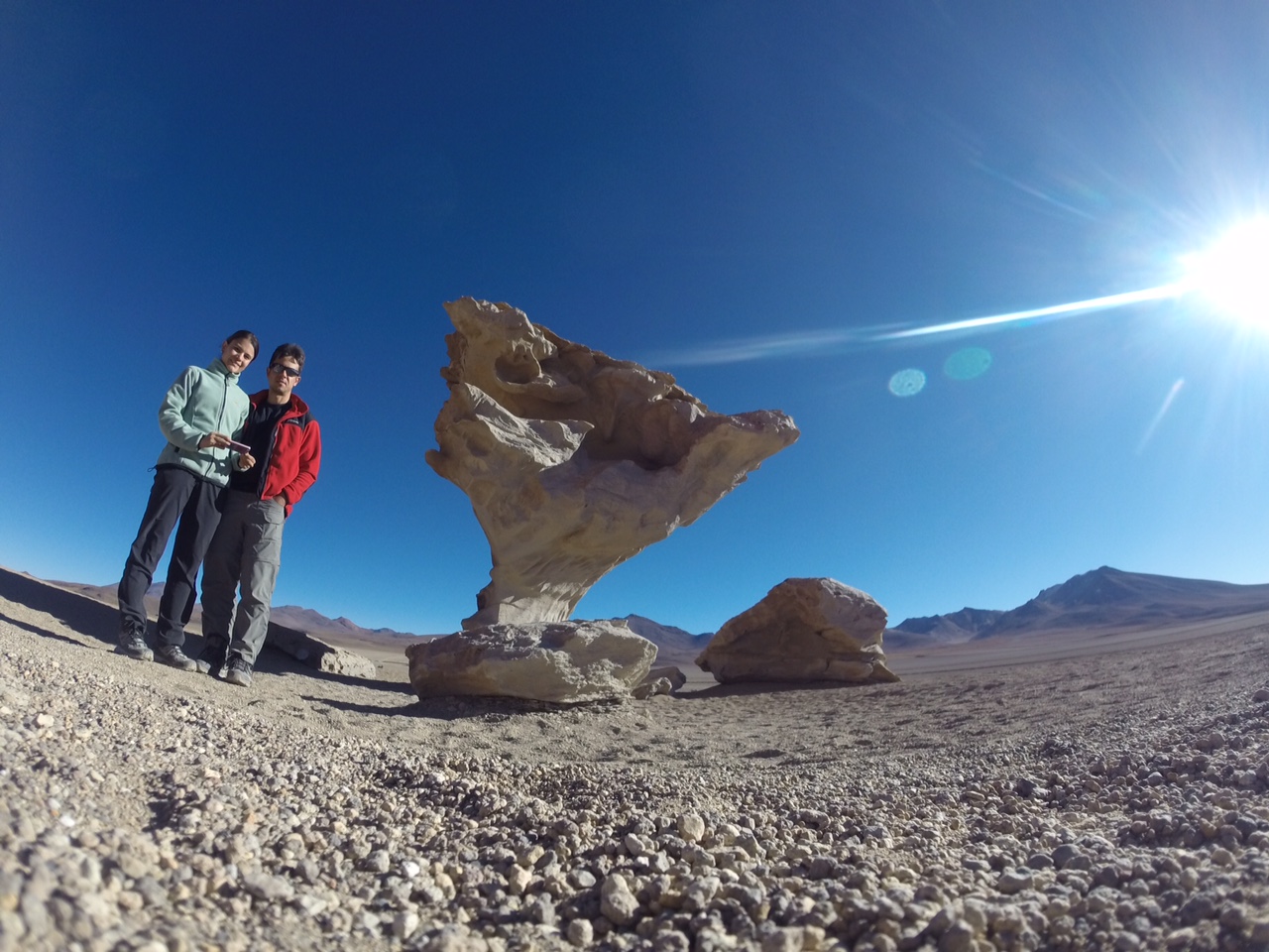 Entro en la habitación del hostal que compartimos con Tomas y Sonia de la República Checa y con Frédéric de Francia. Abro los ojos con firmeza, necesito unos segundos para adaptarme y descifrar en medio de la oscuridad el lugar donde está mi cama, llevo los minerales de la tierra en la piel y una sonrisa que no se extingue dibujada en los labios. Llega la noche a este lugar inhóspito y nos vamos a dormir con la felicidad de haber recorrido tantos kilómetros para verlo con nuestros propios ojos.