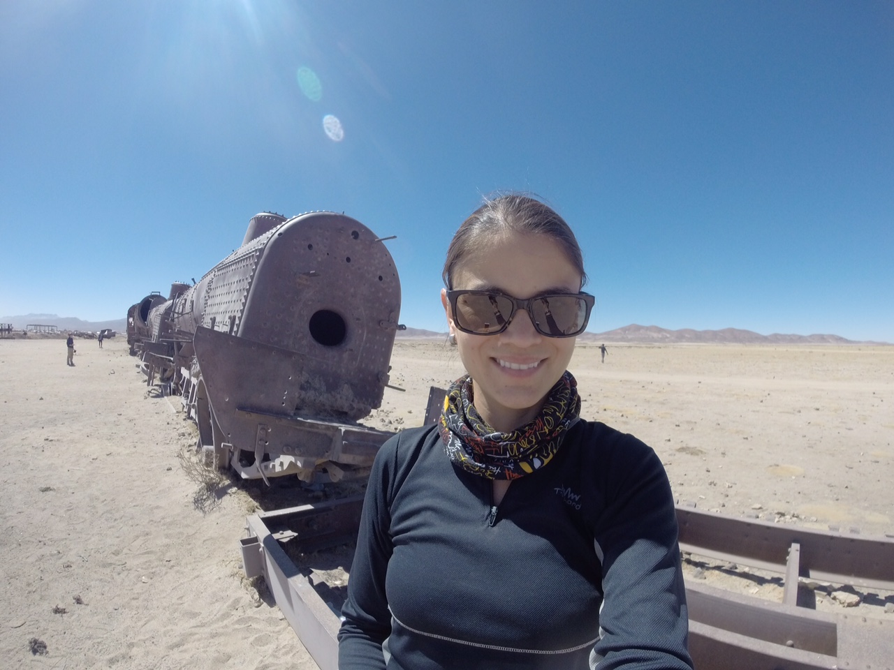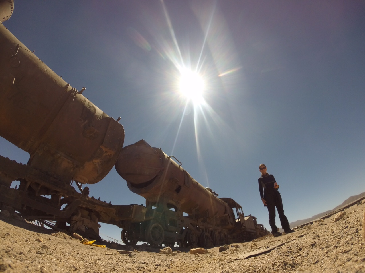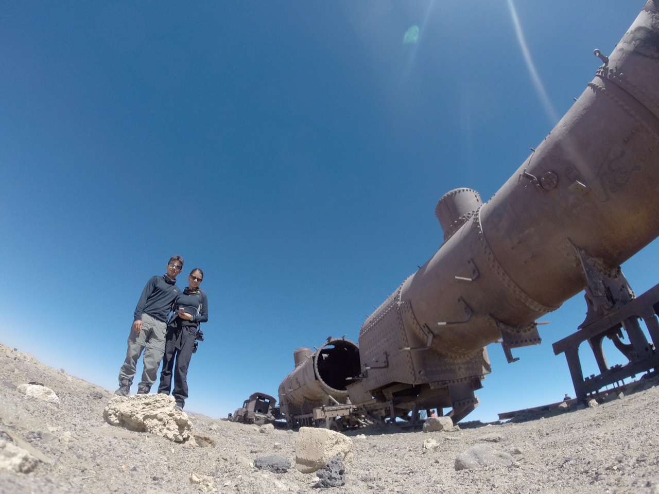 La primera parada fue en el Cementerio de Trenes al lado de lo que fue en otras épocas la segunda mina de plata mas grande del mundo, la mina de Mulacayo. Óscar, nuestro guía nos compartió cómo los españoles saquearon tanta plata de Bolivia que bien hubiesen podido construir un puente de plata hasta España. Con algo de tristeza, nos contó como perdieron el acceso al mar con Chile y cómo un presidente anterior había vendido las líneas férreas a este país para que luego fueran estratégicamente abandonadas impidiendo así a Bolivia desarrollar su industria minera. En su discurso afloró la historia del Inca Atahualpa por el que su pueblo pago el equivalente a un cuarto lleno de oro por su libertad para que luego fuera degollado en presencia de todos por un bárbaro conquistador. Historias que siendo reales o tal vez leyenda han marcado nuestro pueblo andino que aún vive las consecuencias de una colonia bárbara y mezquina. Esa misma por la que España pudo ser una gran potencia a lo largo del oscurantismo medieval.
