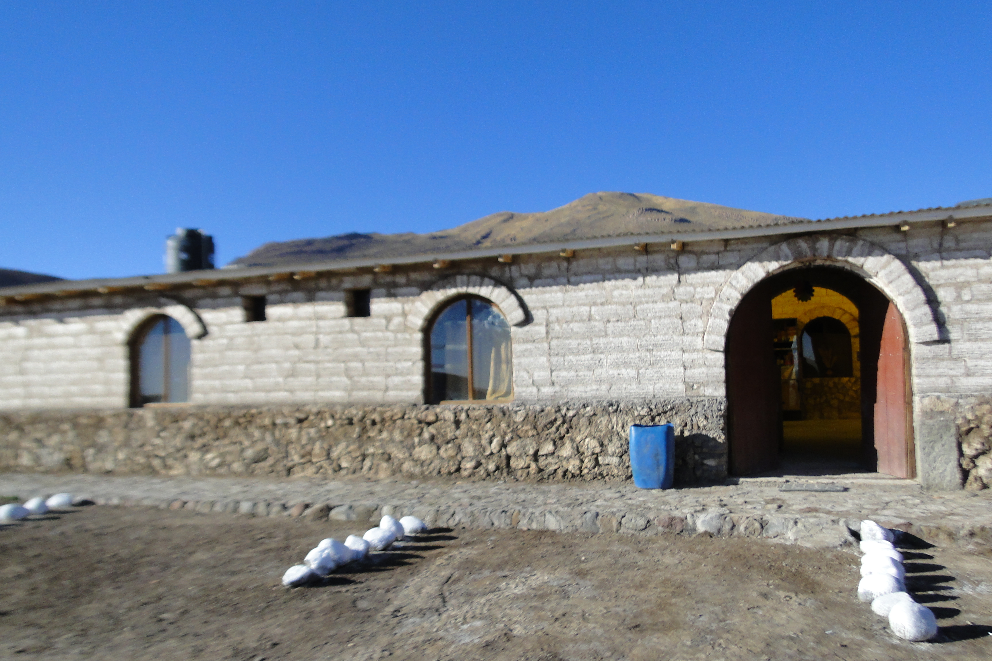Nuestra siguiente parada fue el Hotel de Sal, construido hace varias décadas por un local y que ahora se encuentra cerrado para evitar el daño ambiental proveniente de los desperdicios de miles de turistas. Pudimos apreciar su interior y su fachada construidos con grandes bloques de sal que, como si fuesen hielo, son extraídos directamente de la superficie. Mas tarde veríamos este tipo de construcción replicada en muchas de las paradas que realizamos.