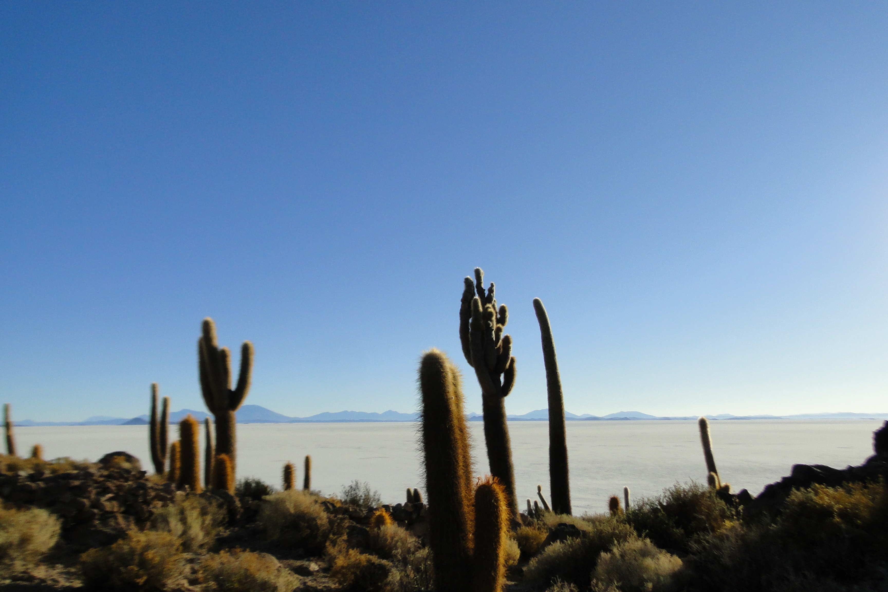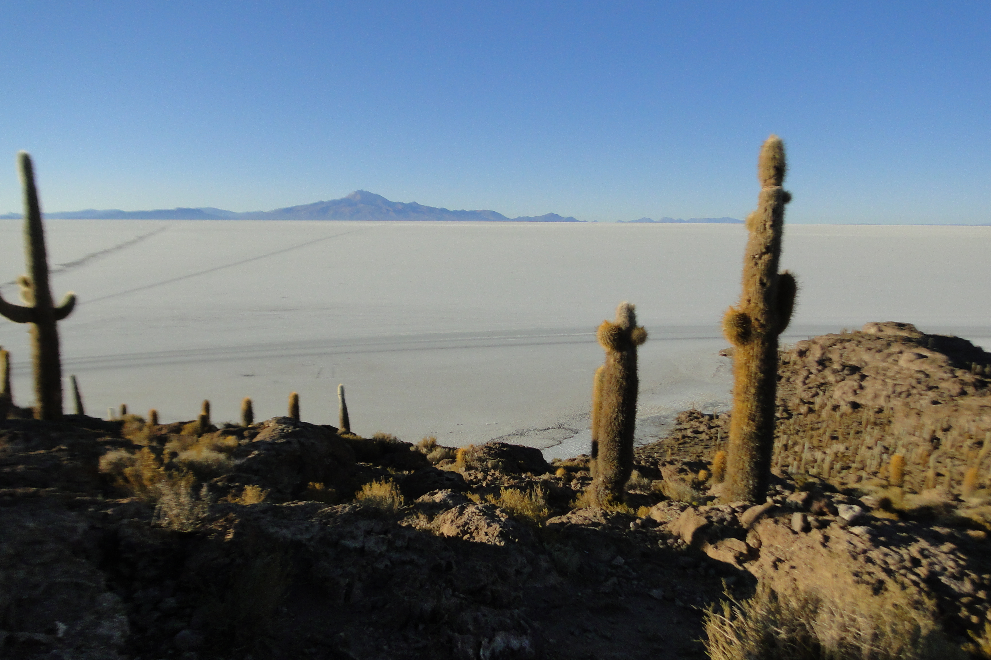 La siguiente parada fue la Isla Incahuasi en la que pudimos hacer una pequeña caminata y aprender que esta pequeña formación de un kilómetro cuadrado fue un volcán activo hace miles de años. La isla, plagada de grandes y milenarios cactus que solo crecen un centímetro por año, es el hogar también de pequeños colibríes que hacen la importante labor de polinización a lo largo de todos estos islotes volcánicos.