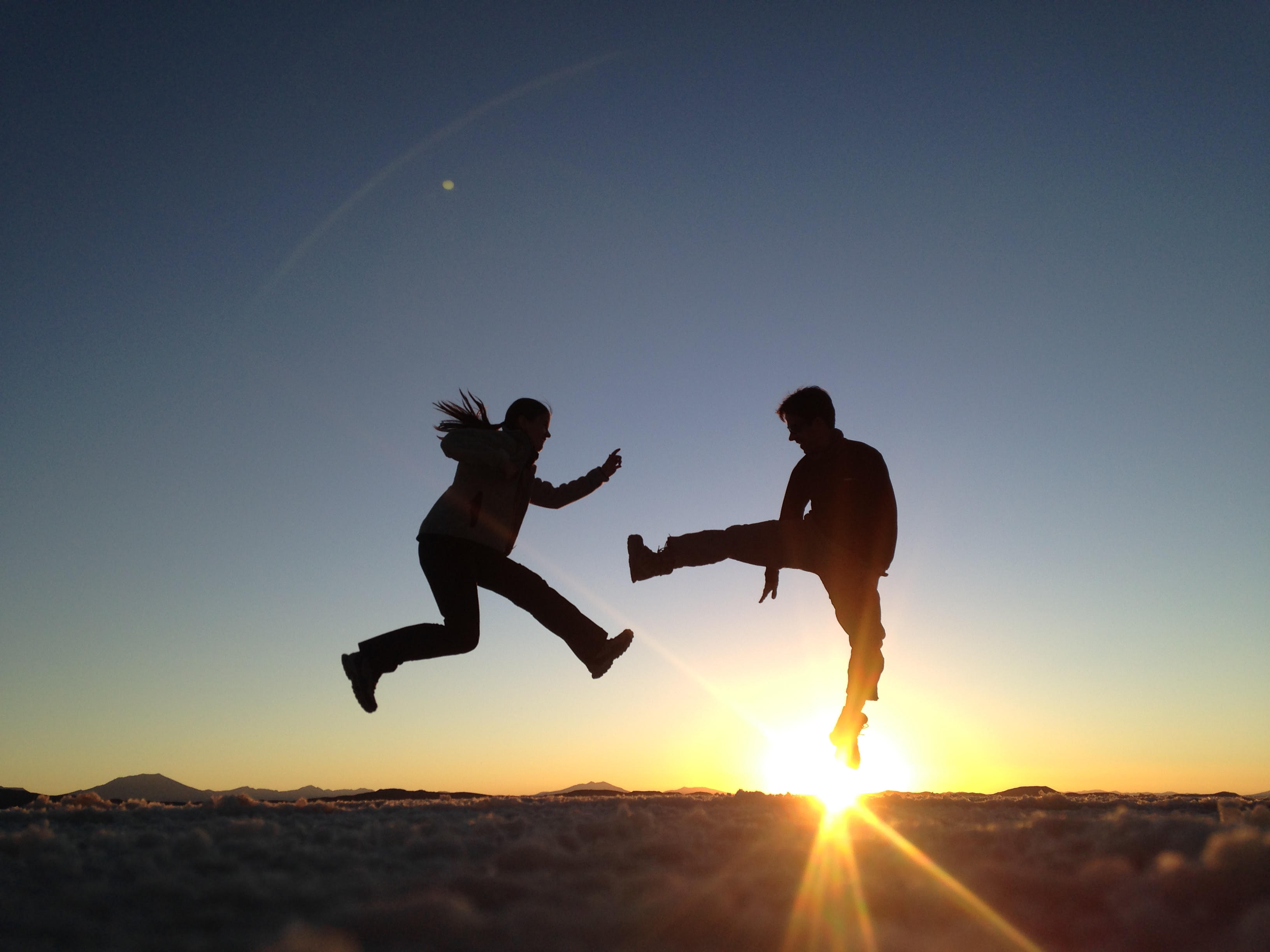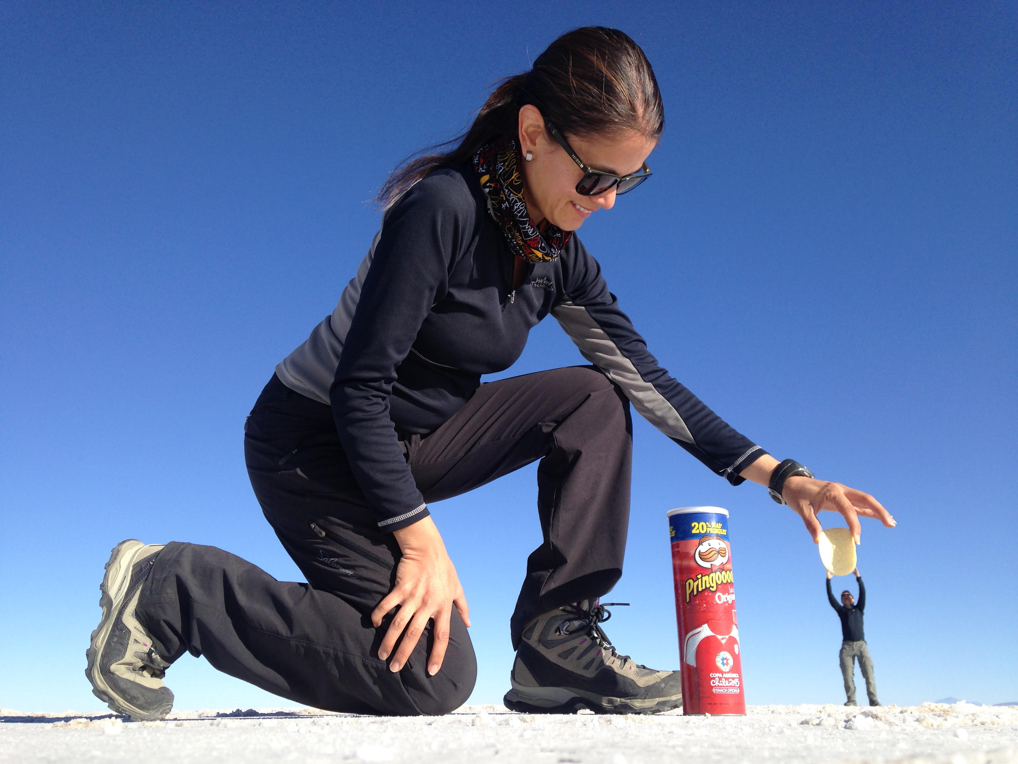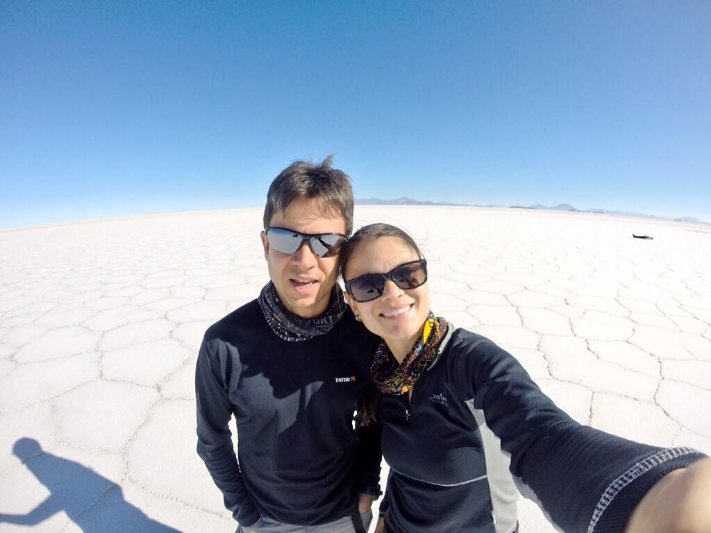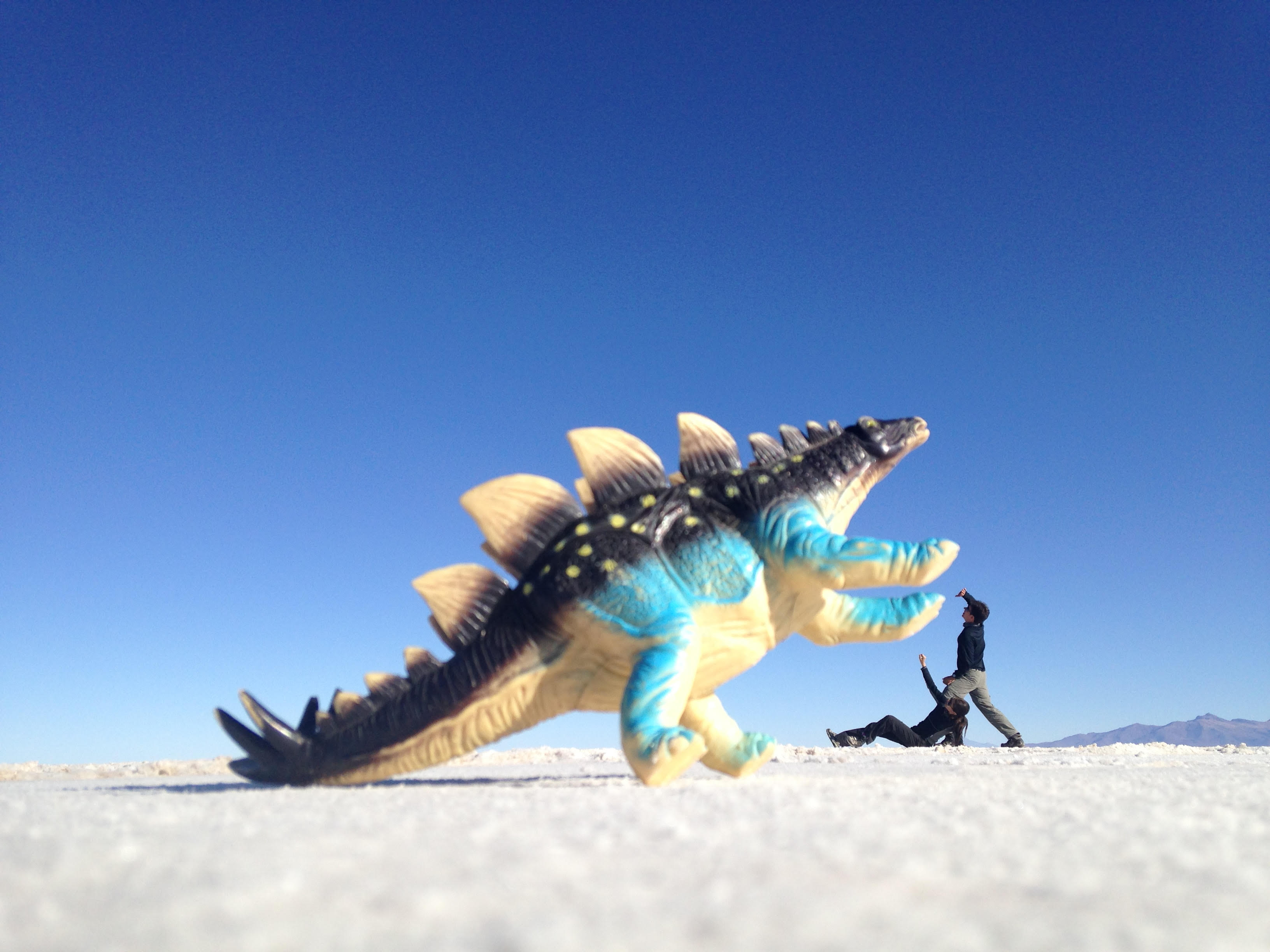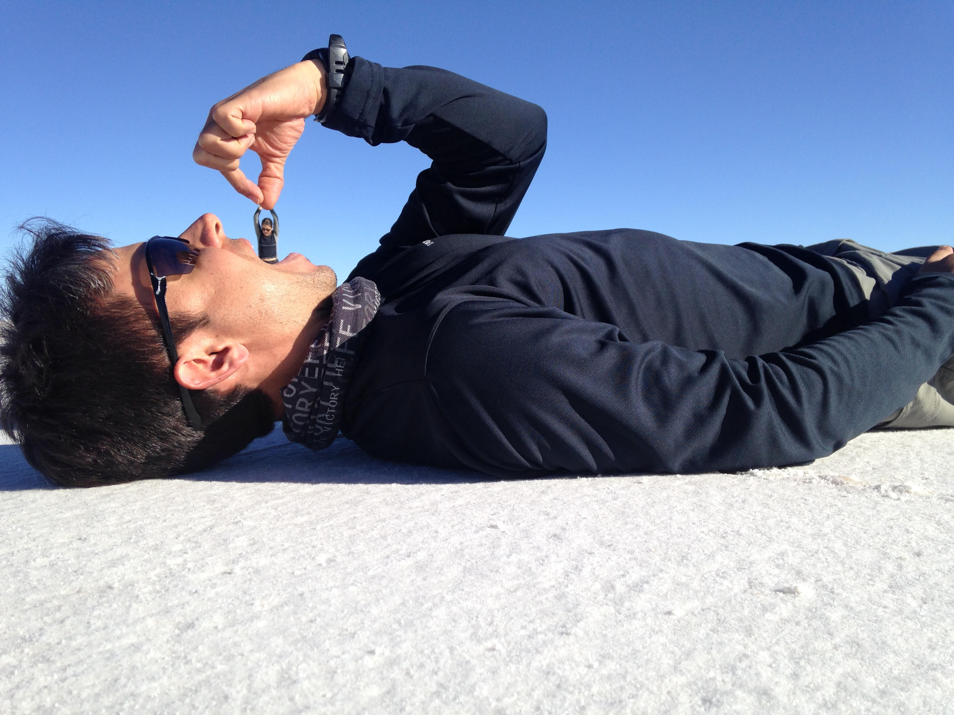 Continuamos adentrándonos en el salar hasta un lugar en el que el horizonte era difícil de distinguir. Todo era blanco y árido, carente de vida. Estuvimos una hora apreciando el paisaje, sintiendo el salar y tomando unas divertidas fotos muy características de los toures. Aquí nuestro guía nos explicó que el salar proviene de grandes lagos que existieron hace miles de años y con el efecto de la evaporación se formo este inmenso desierto de 12 mil kilómetros cuadrados y 200 metros de profundidad.