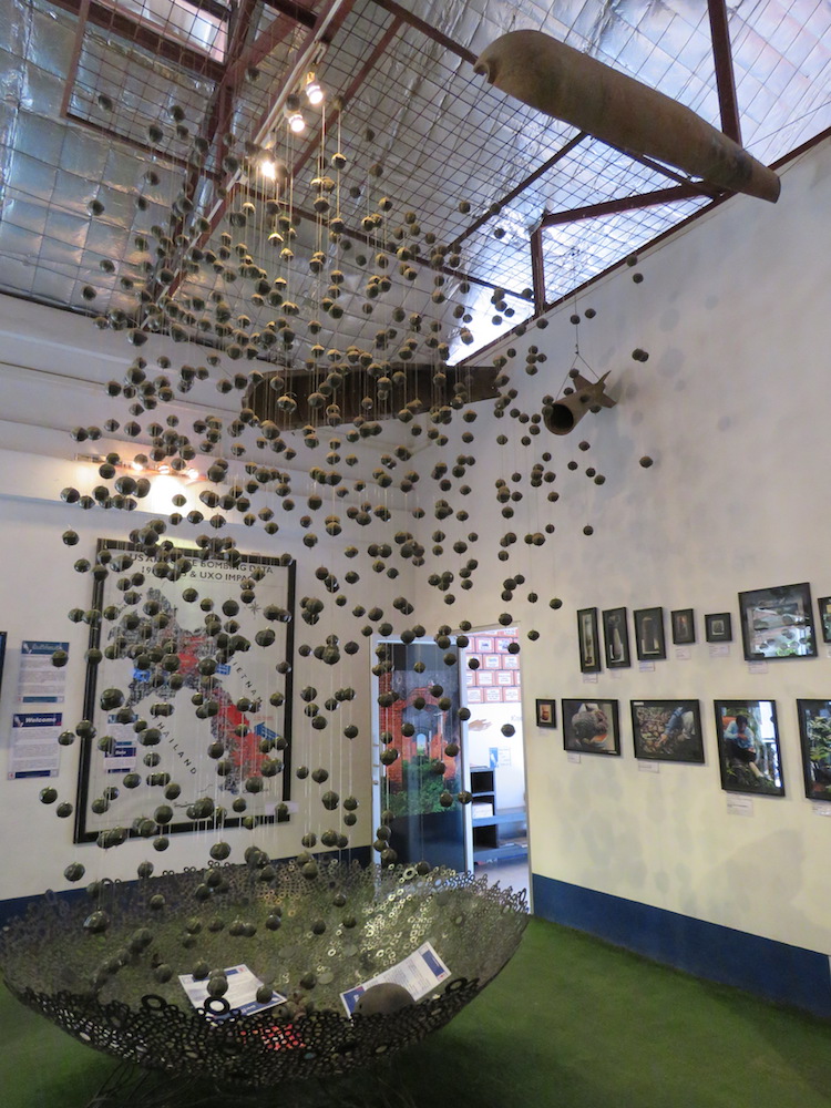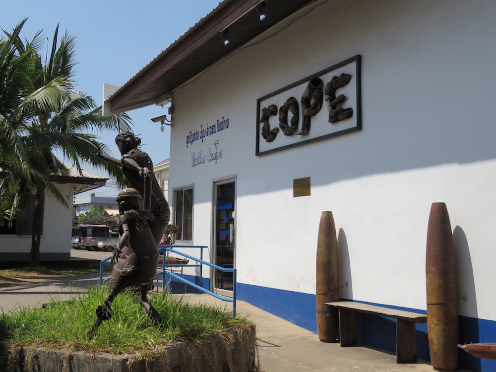 De los lugares que visitamos, recomendamos especialmente el Centro de Visitantes COPE. Esta pequeña exhibición (que bien merece por lo menos un par de horas) busca crear conciencia sobre los efectos de los objetos no explotados (UXO) que en el caso de Laos son miles de bombas arrojadas por los Estados Unidos en su territorio durante la guerra de Vietnam (o la guerra de América según a quién se le pregunte).