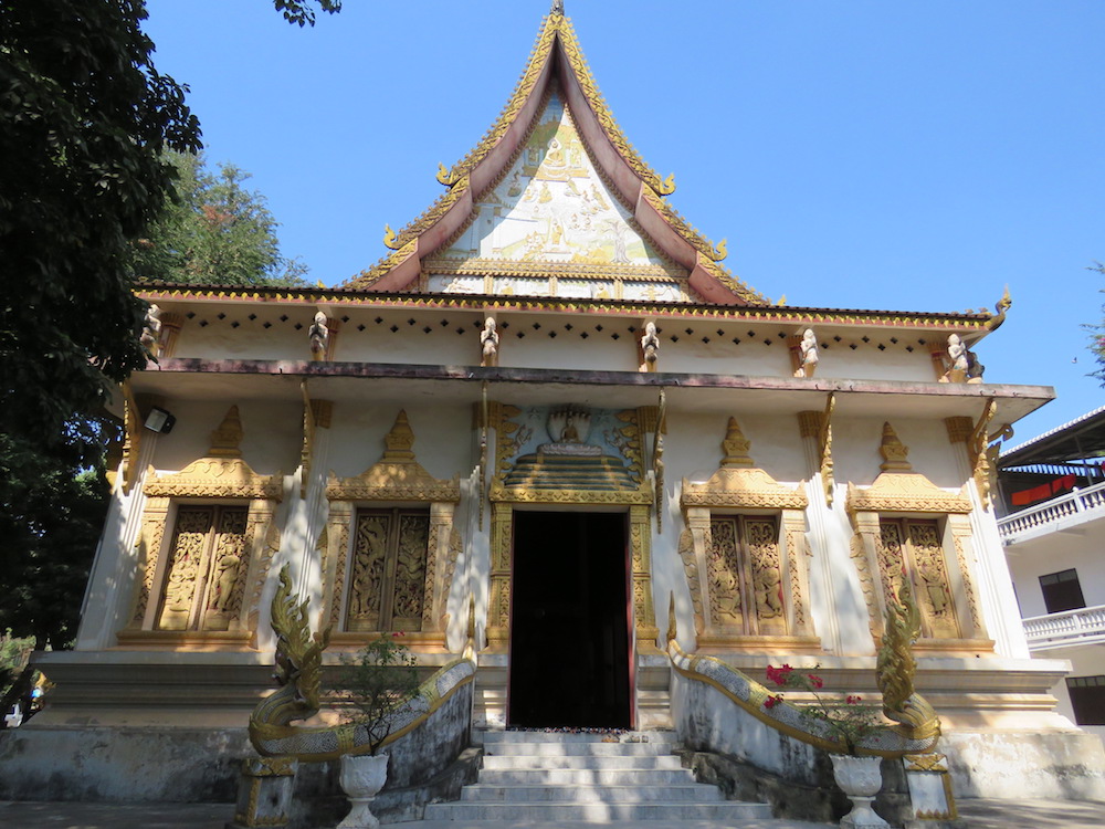Vientián es una ciudad cargada de influencia francesa pero que mantiene su estilo asiático. Nos quedamos un día en medio en los que recorrimos caminando los principales atractivos de la ciudad. Nos llamó la atención que los templos están mucho más ornamentados que los que vimos en Myanmar, con un estilo un poco más parecido al de Tailandia y Camboya. Estos son algunos de ellos: