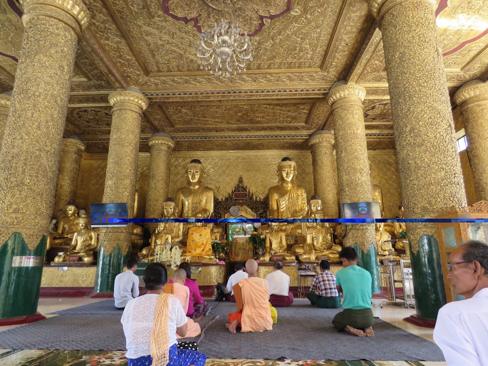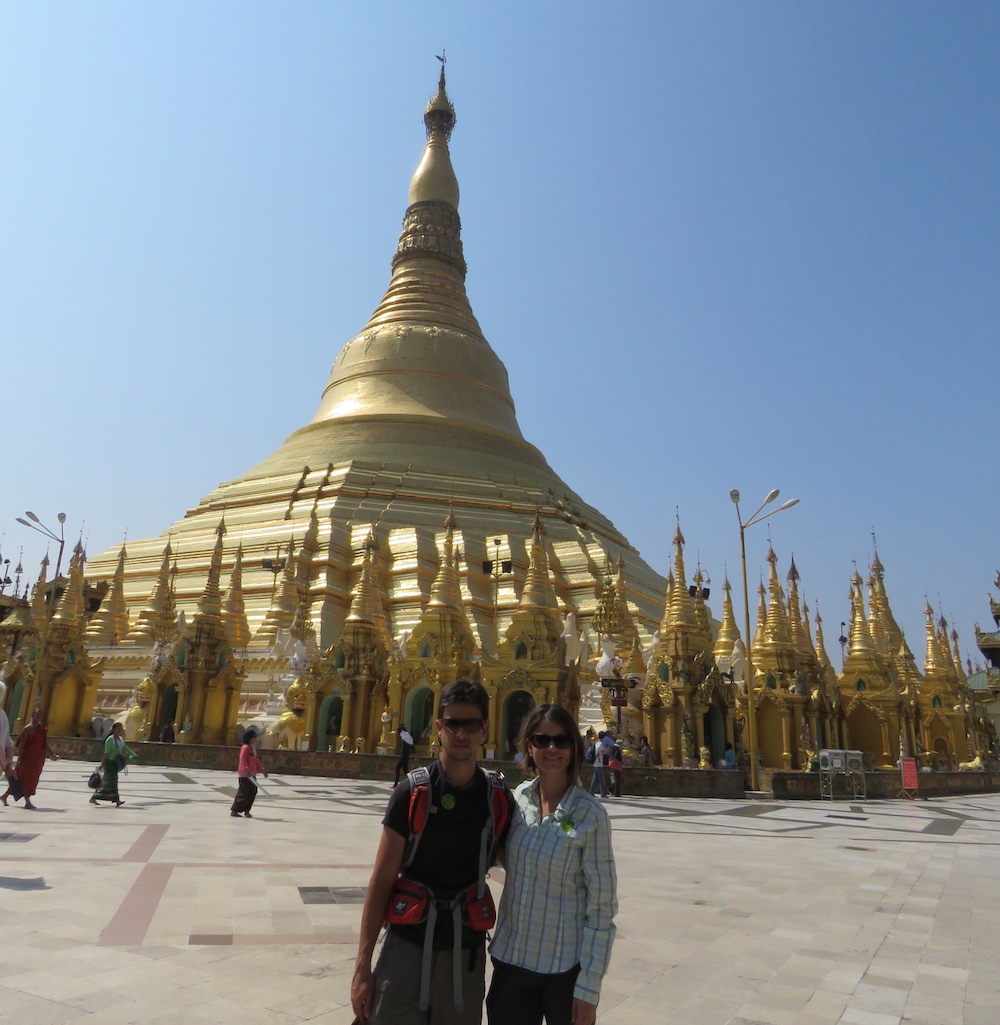 El día siguiente nos dedicamos a explorar la Shwedagon Paya, la cual es la pagoda más importante del país debido a que allí se encuentran varias reliquias importantes entre ellas ocho cabellos de Siddharta Gautama. Su estupa o cúpula, de 100 metros de altura, está cubierta por más de 60 toneladas de oro macizo y en la corona superior cuenta con un innumerable juego de piedras preciosas, entre las que se destaca una colección de 4,531 diamantes. Esta pagoda, de 2.500 años de antigüedad, es claramente una de las más importantes maravillas religiosas del mundo. En definitiva la inversión de 8.000 Kyats (USD 6 c/u) del ingreso y de 15.000 Kyats (USD 11.5) que pagamos para una visita guiada, valieron la pena.